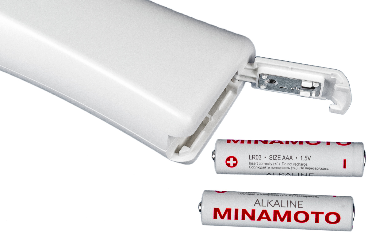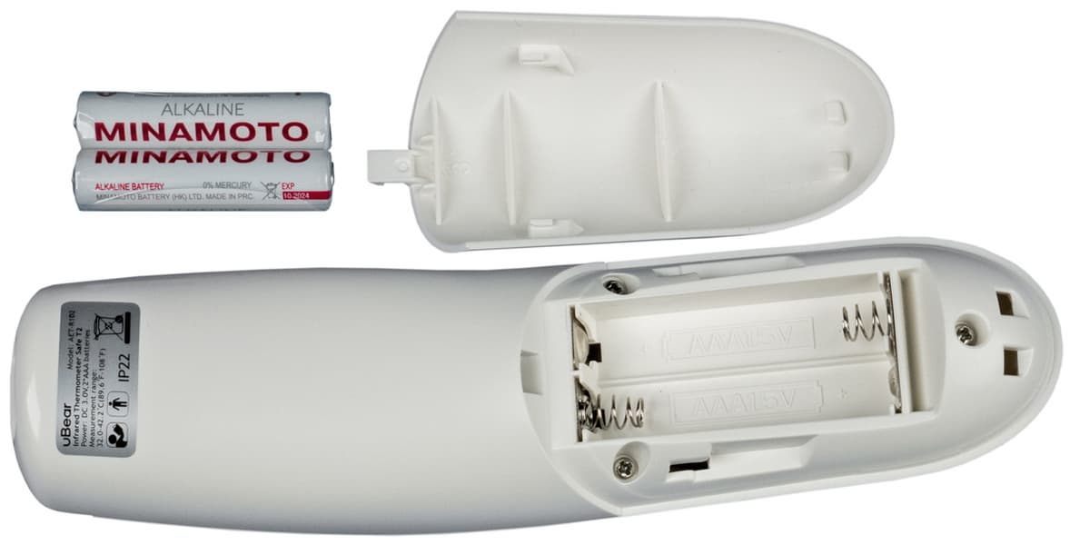 Комплектация скромная: сам термометр, две щелочные батарейки типоразмера ААА и описание на русском языке.