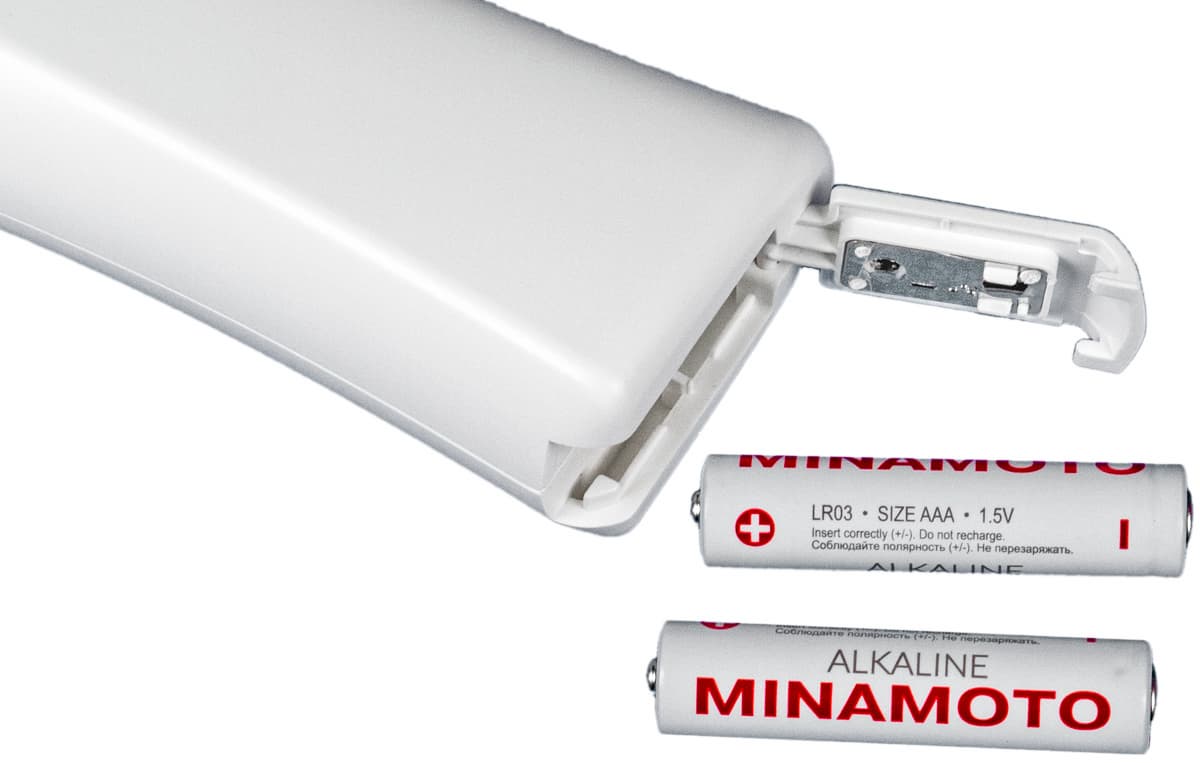 Батарейный отсек находится снизу на рукоятке и закрыт сдвижной крышкой.