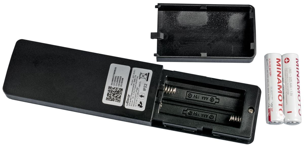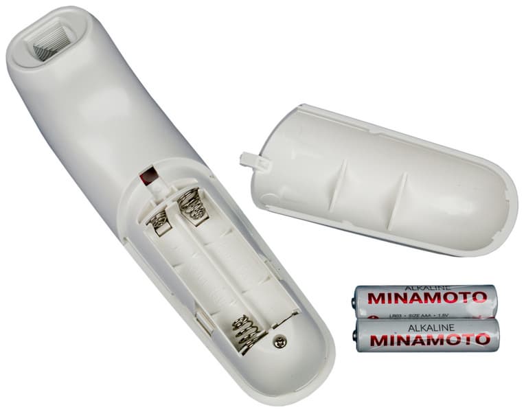 Батарейный отсек находится снизу на рукоятке и закрыт сдвижной крышкой. Управляется термометр круглой кнопкой, расположенной ниже экрана.
