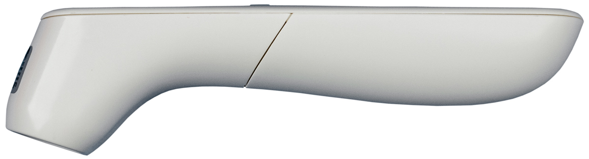 Корпус по форме напоминает маленький бумеранг — его часть с экраном отклоняется от рукоятки на угол 35-40 градусов. Пожалуй, это самая элегантная модель, однако пользоваться ею не так удобно, как предыдущей: кисть приходится немного выворачивать.