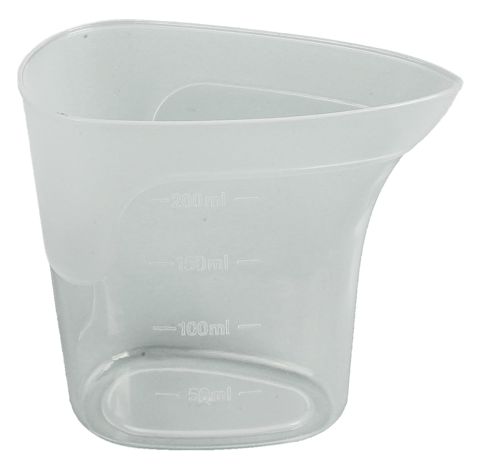 В комплект входит прозрачный пластиковый стакан объемом в 200 мл с зауженным носиком для наливания воды в резервуар утюга. Стаканчик имеет зауженную округлую форму, поэтому он будет занимать совсем немного места при хранении.