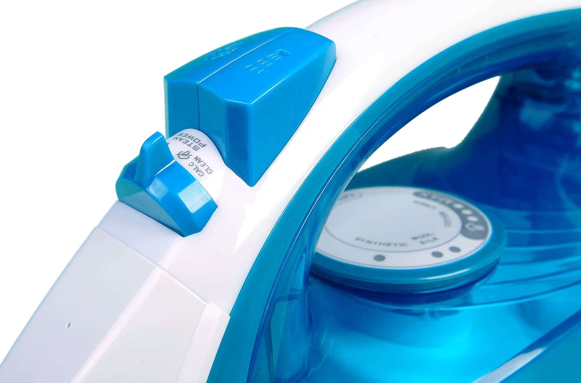 С зауженной стороны ближе к носику имеется отверстие для наливания воды. Крышка открывается и закрывается довольно плотно, при этом раздается щелчок. На ручке расположены две кнопки и регулятор подачи пара. Под ручкой, в верхней части корпуса расположен терморегулятор — круговой переключатель температурного режима. Регулятор вращается со специфическими щелчками, ход при этом не затруднен, пошаговость при переключении режимов также не ощущается.