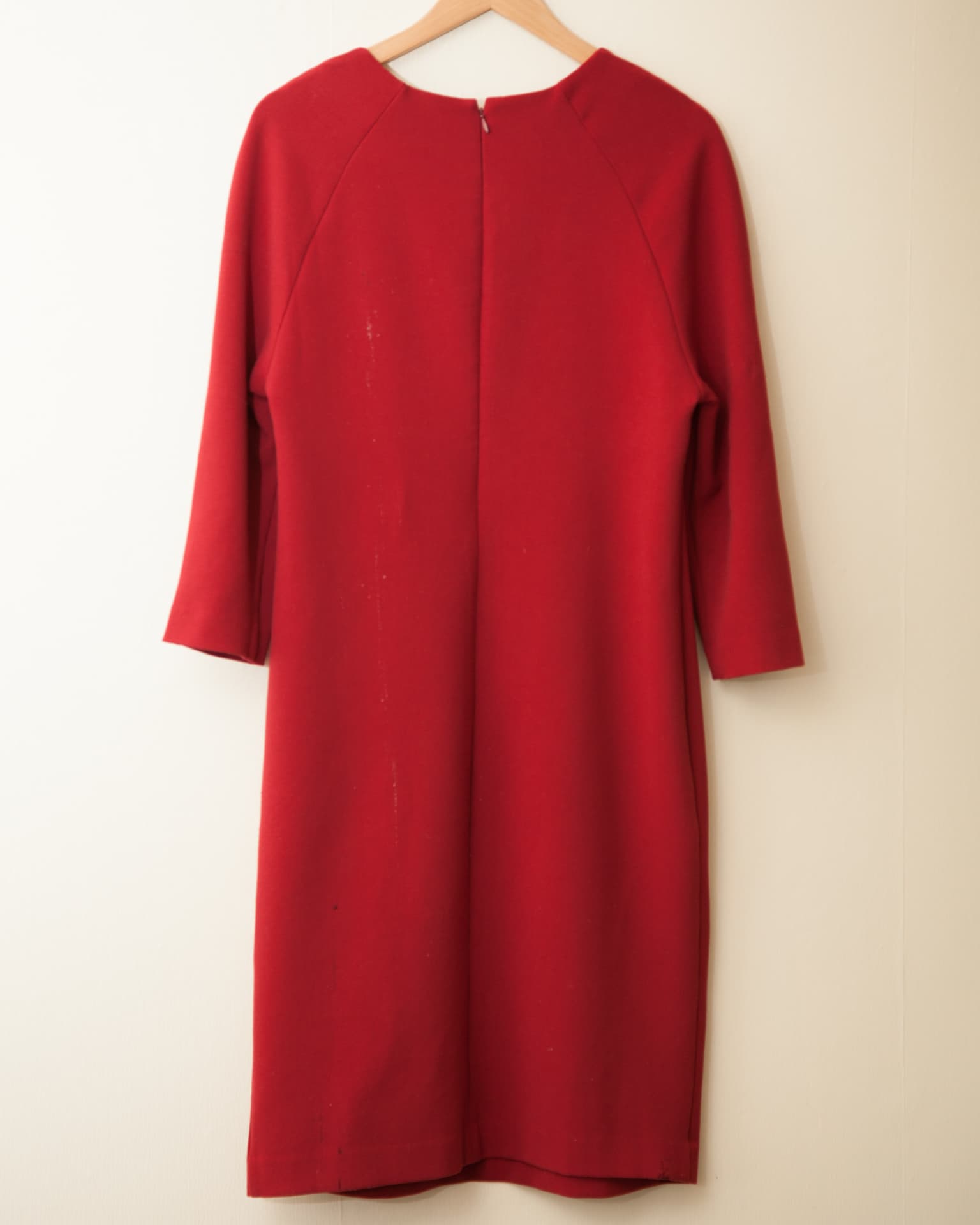 По ткани можно было бы лишь слегка пройтись не сильно горячим утюгом. Мы же решили отгладить платье бесконтактным способом, т. е. отпарить его. Включили утюг на третий температурный режим, при котором мощность подачи пара является самой высокой, и приступили. Вскоре стало понятно: чтобы был заметен хоть какой-то эффект от глажки, нужно держать подошву утюга очень близко к полотну. При обработке швов, подола и подгибов подключали режим парового удара. В этом режиме из отверстий в подошве иногда вылетали довольно крупные капли воды, которые оседали на полотне и мочили его.