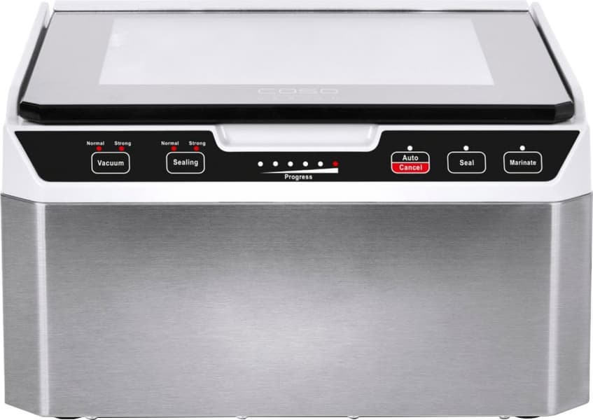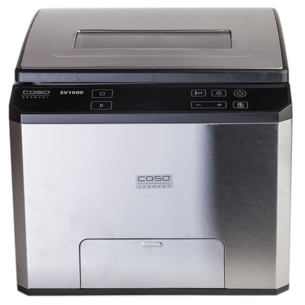 Желающие приобщиться к «высокой кухне» могут обратить внимание на отдельно стоящие приборы, позволяющие и запаковать продукты в вакуумные пакеты, и сразу же приготовить их. SousVide Center SV1000 компании Caso представляет собой довольно крупный агрегат: вакууматор плюс су-вид — емкость, в которой поддерживается циркуляция воды строго заданной температуры.
