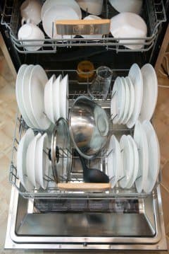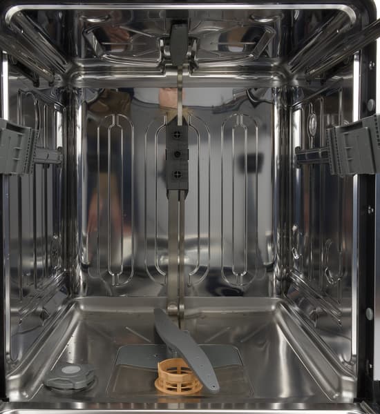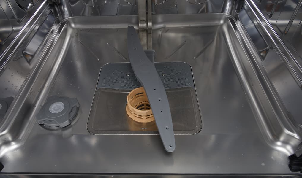 Время от времени бак посудомойки и система фильтрации требуют очистки. Последнюю следует извлечь, разобрать на части, все их промыть под струей воды, при необходимости пользуясь щеткой. Внутреннюю сторону дверцы можно протирать мягкой тканевой салфеткой, смоченной в теплой воде. А еще стоит уделять внимание лопастям для разбрызгивания воды, чтобы отверстия в них не забивал осадок. Если это всё же произошло, их надо снять (как это сделать — описано в руководстве пользователя) и промыть.