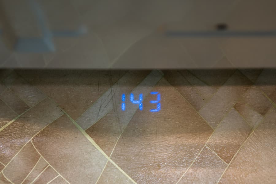 Во время выполнения программы, устройство проецирует на пол время, оставшееся до конца сценария, что значительно удобнее традиционного луча. Яркие и контрастные голубые цифры отлично читаются при любом освещении.