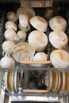 По традиции, в этом тесте мы использовали нашу идеальную грязь: смесь самого дешевого майонеза и кетчупа с высоким содержанием крахмала. Такая комбинация белков, жиров и углеводов хорошо липнет, отлично засыхает и тяжело отмывается. Чтобы машине было совсем сложно, мы оставили запачканную посуду в баке с приоткрытой дверцей на сутки. За это время смесь основательно засохла. Для устранения загрязнений мы выбрали программу Универсальная.