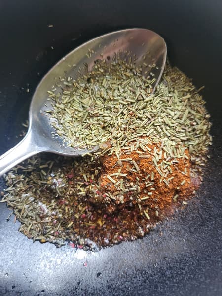 Сделали маринад, смешав розмарин, тимьян, паприку, соль, перец, оливковое масло и лимонный сок.