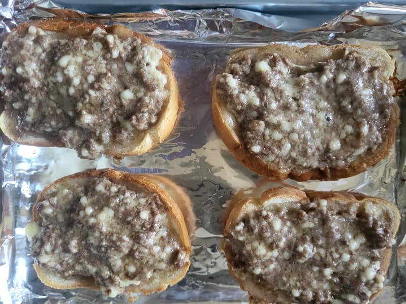 На эту мысль нас натолкнул производитель, у которого на сайте написано про горячие тосты на завтрак. И мы вспомнили старый советский рецепт: горячие бутерброды, которые делаются из смеси сырого фарша, сыра и небольшого количества майонеза (или яйца).