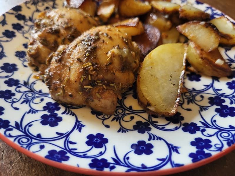 Через 25 минут мы курицу вынули, но не обнаружили (как и у котлет) поджаристой корочки и отправили ее обратно еще на 15 минут. Не помогло. Понятно, что филе куриного бедра пропеклось и за 25 минут, но нам хотелось корочки. К сожалению, не вышло.