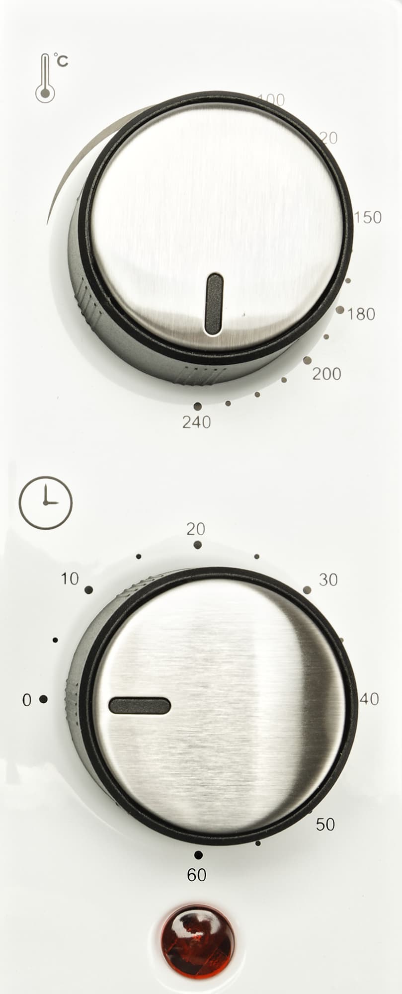 Два регулятора: верхний — для температуры, нижний — для времени.