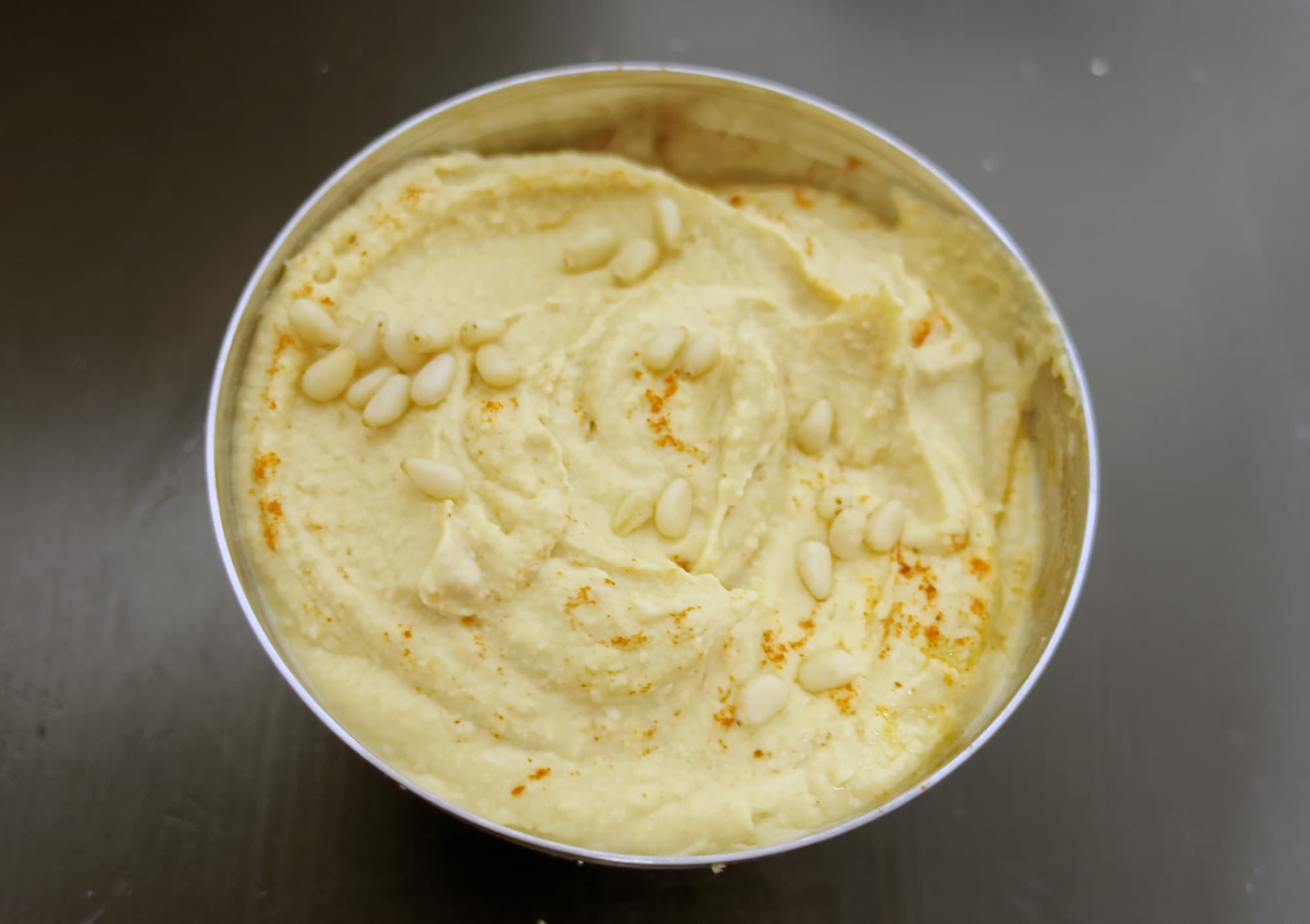 Мы положили в самый большой стакан вареный нут, тахину, чеснок, зиру, добавили овощной бульон, оливковое масло и сок одного лимона. Ради исследовательского интереса кинули горсть кунжута. Все продукты клали «на глазок», примерно соблюдая пропорции классической рецептуры.