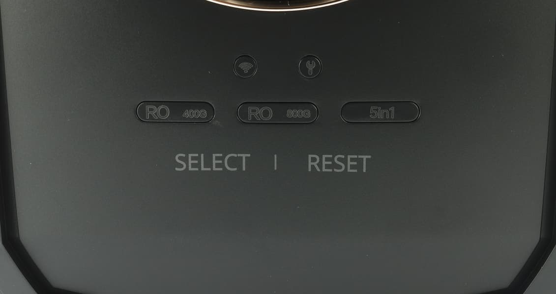 Управления как такового устройство не требует. Две сенсорные кнопки «Select» и «Reset» предназначены для сброса межсервисного интервала при замене фильтрующих картриджей.