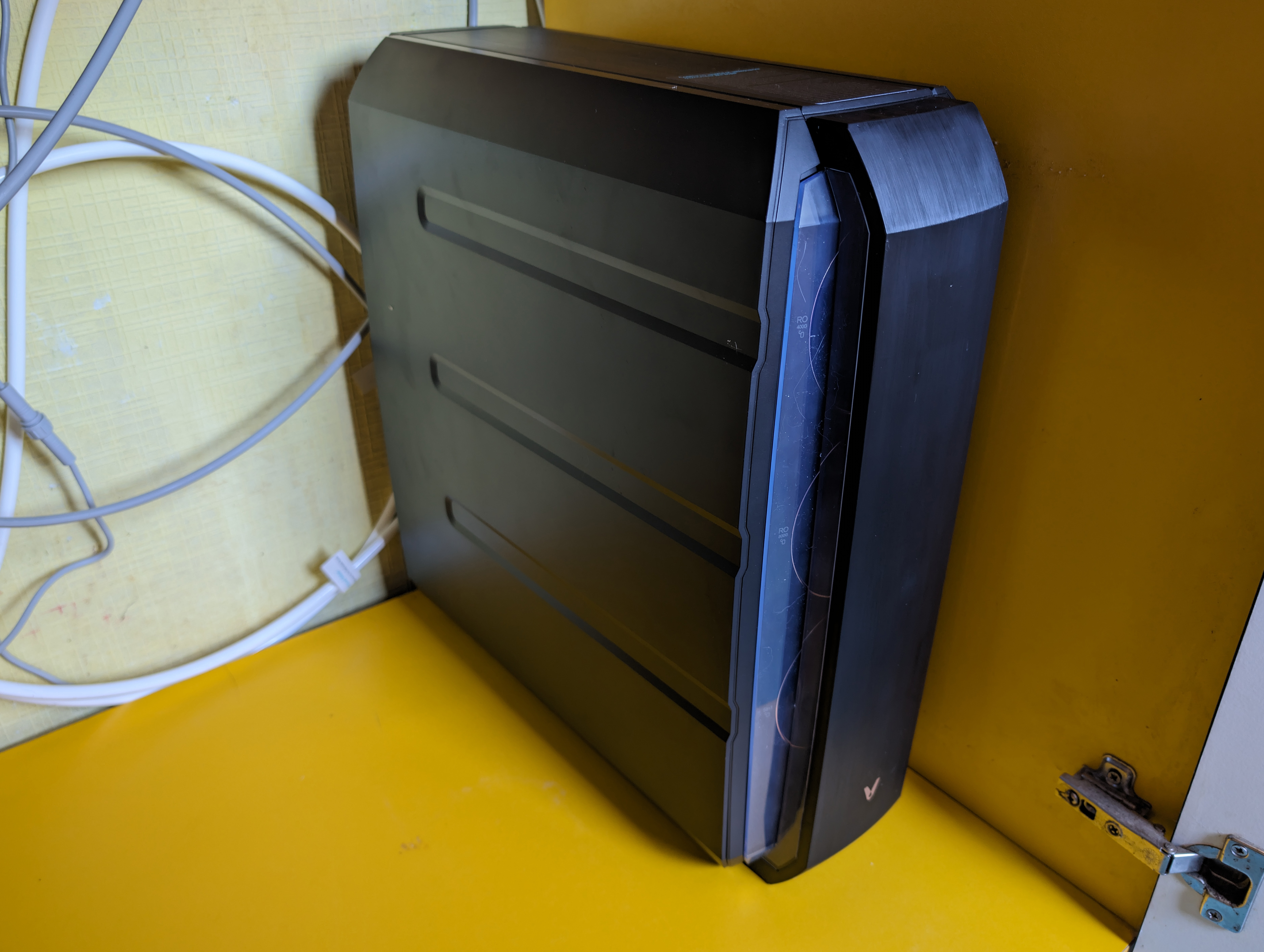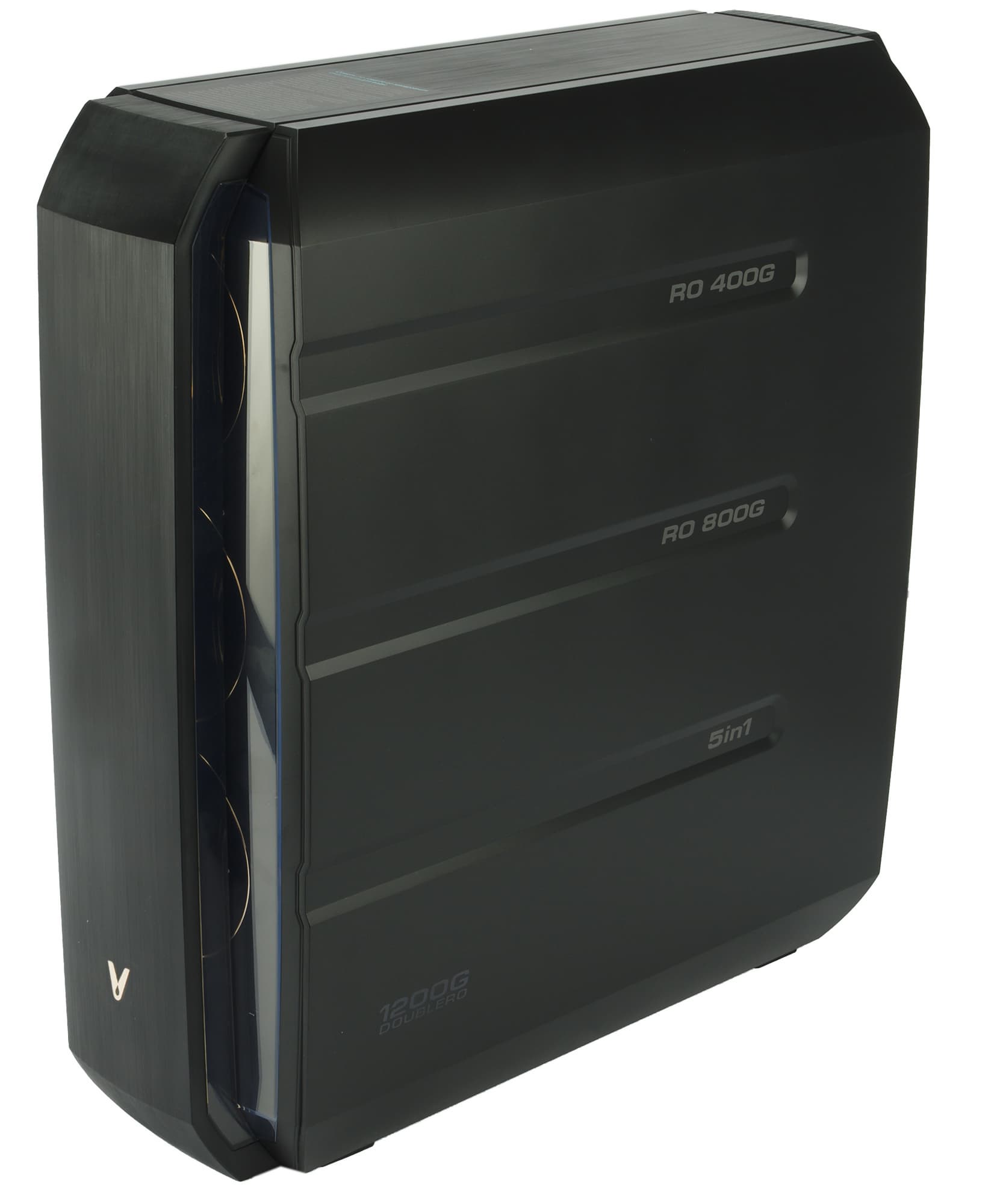 Viomi Blues Pro 1200G больше похож на компьютерный корпус, чем на систему фильтрации. Темным пластиком с матовой поверхностью и крышкой на магнитах с прозрачными элементами и золотистым логотипом производителя он никак не напоминает традиционные фильтры, которые принято прятать под раковиной рядом с мусорным ведром.