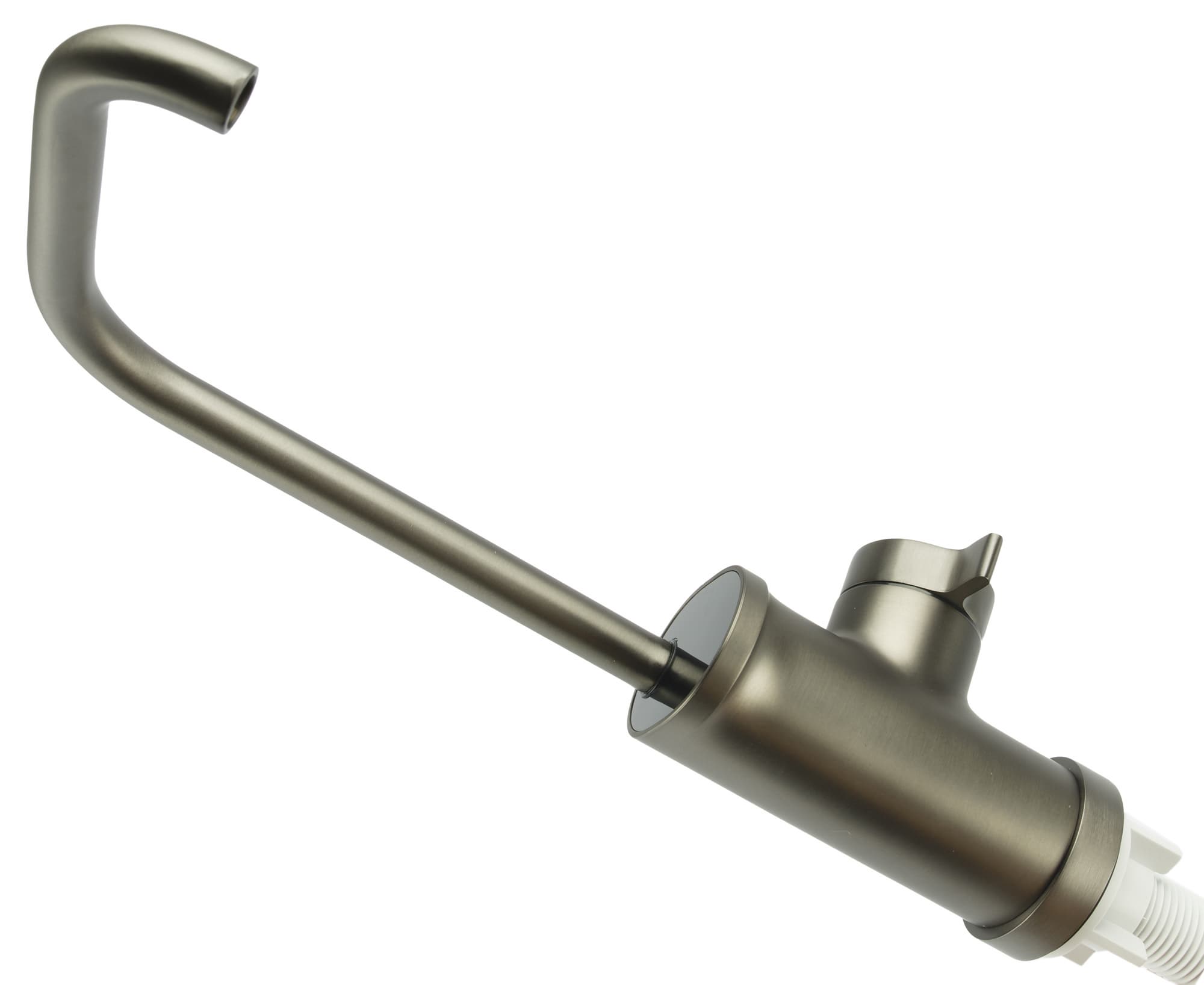 Чистая отфильтрованная вода подается в кран, который врезается в столешницу, а вода с остаточными загрязнениями сливается из фильтра в канализацию по отдельному шлангу.