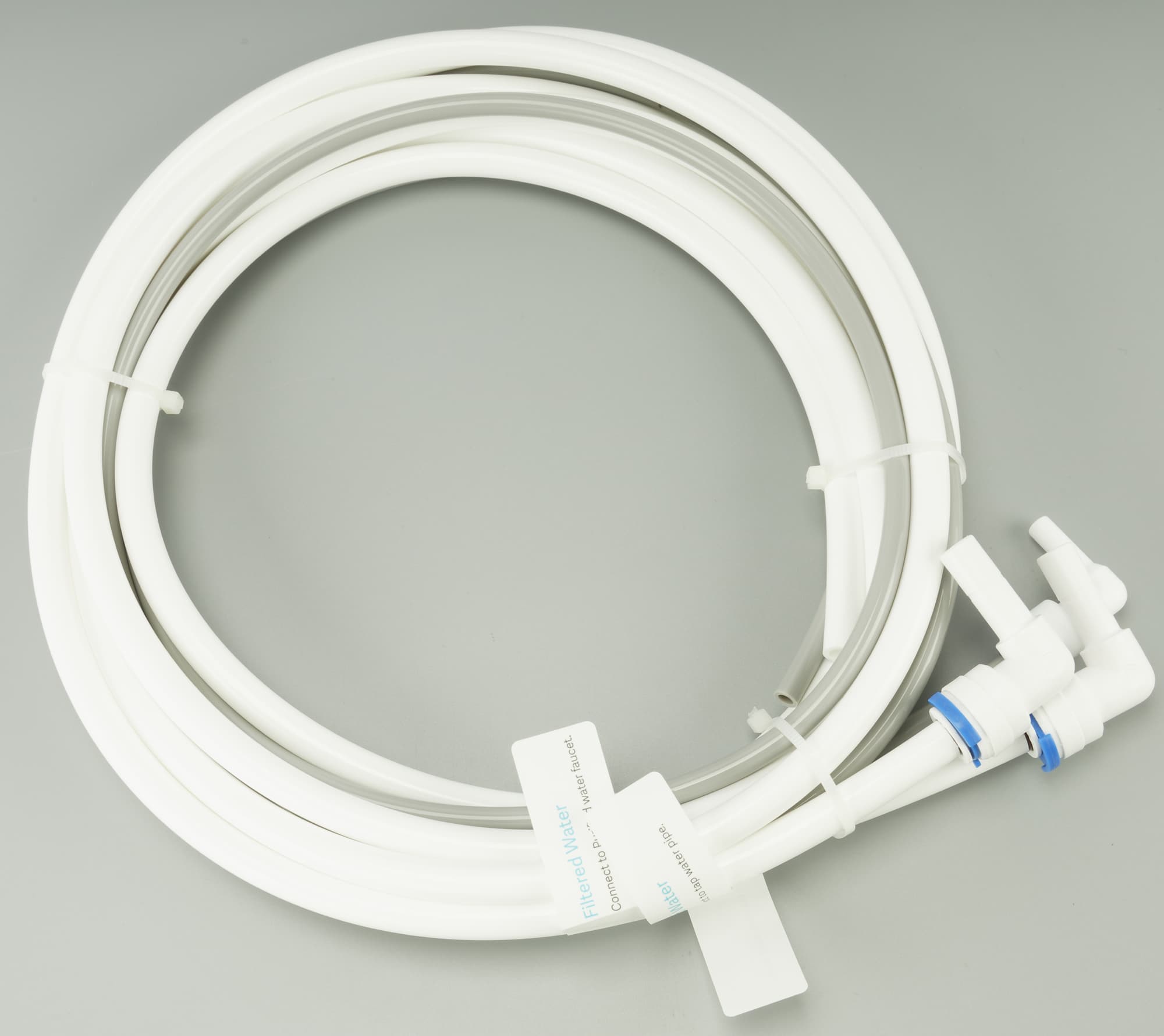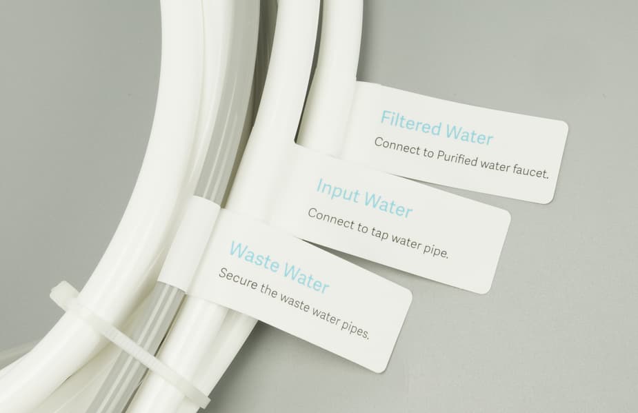 Корпус очистителя удобно размещается в кухонном шкафчике под раковиной, а горизонтальное положение картриджей делает их замену несложной и быстрой. Длины входящих в комплект пластиковых труб с избытком хватает для типовой инсталляции. Излишек можно отрезать или компактно свернуть на случай необходимости переноса системы в другое место.