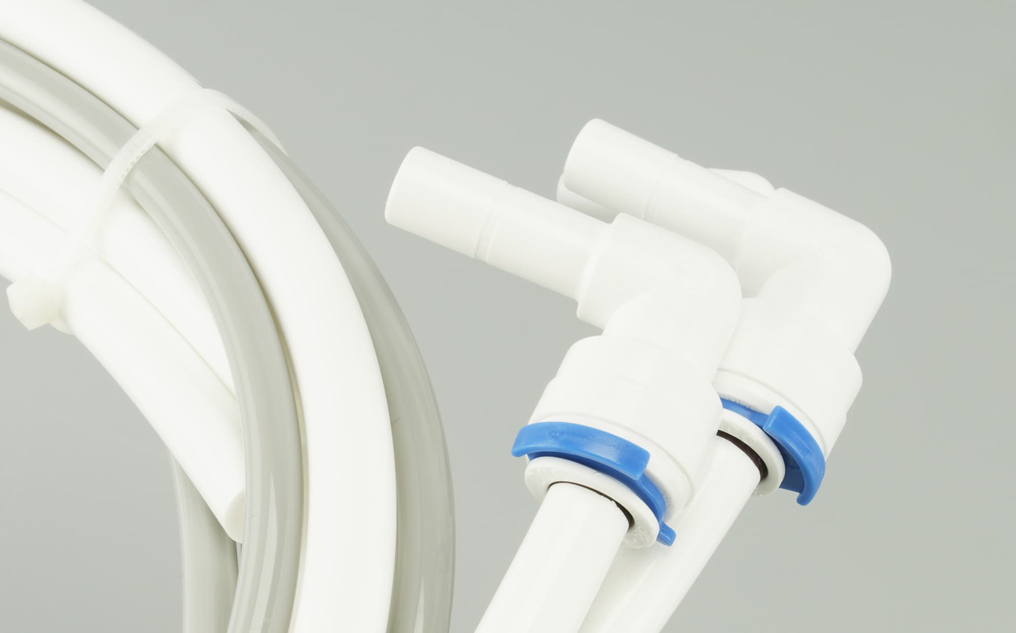 Принцип работы коннекторов знаком каждому, кто сталкивался с монтажом систем водоочистки: пластиковая трубка вставляется в цанговое крепление и зажимается стопорным кольцом.