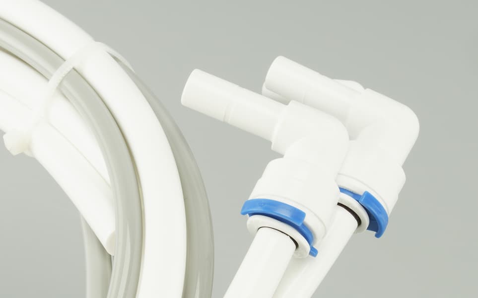 В комплект устройства входит комплект пластиковых труб с быстроразъемными фитингами.