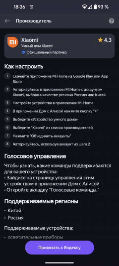 Для сопряжения следует добавить в приложение «Дом с Алисой» плагин («навык» в терминологии Яндекса) Xiaomi и авторизоваться в нем, используя те же данные, что и при регистрации в мобильном приложении. После этого остается только обновить список устройств и в настройках появившегося кондиционера указать псевдоним и нужную комнату.