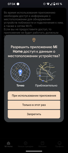 Программе необходим доступ к данным о местоположении устройства и возможность находить устройства поблизости. Также желательно предоставить доступ к отправке уведомлений.