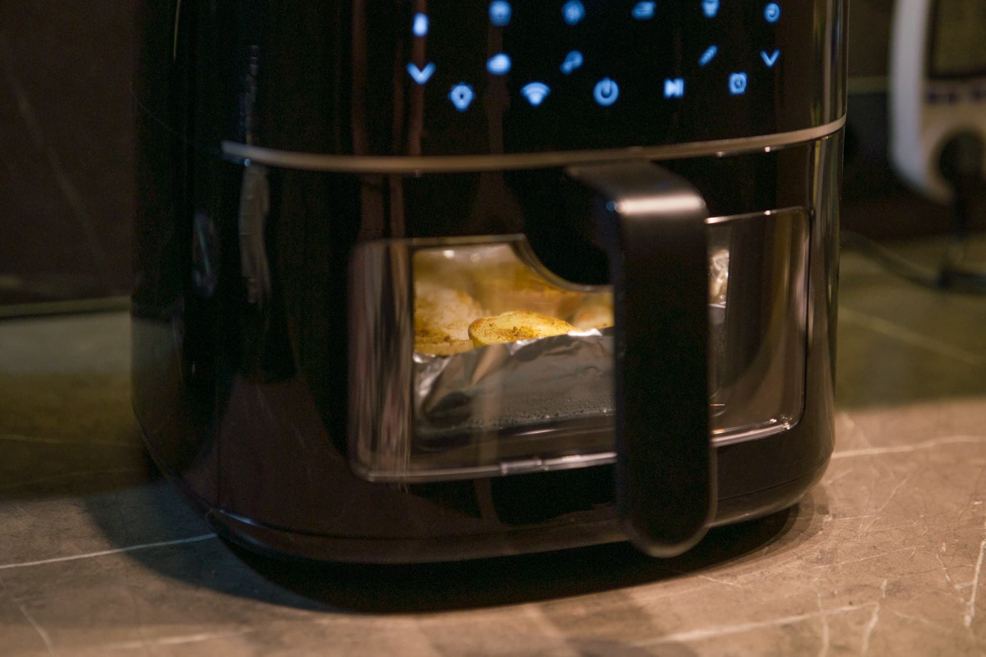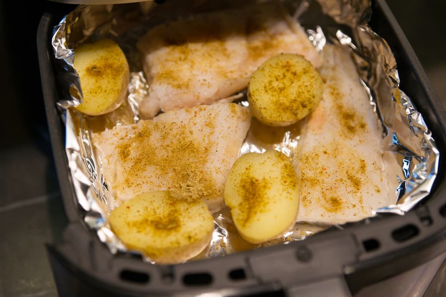 С филе трески Viomi Smart Air Fryer Pro также справился отлично. Рыбную тушку разрезали на три части, сдобрили специями, уложили на фольгу, добавили предварительно отваренный картофель и без масла отправили в камеру.