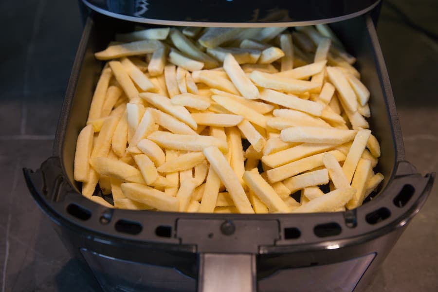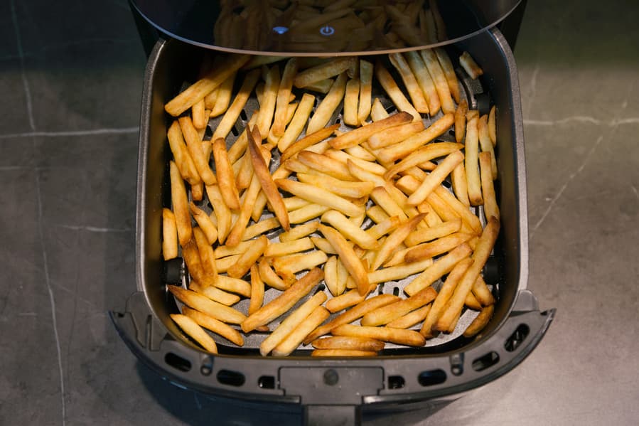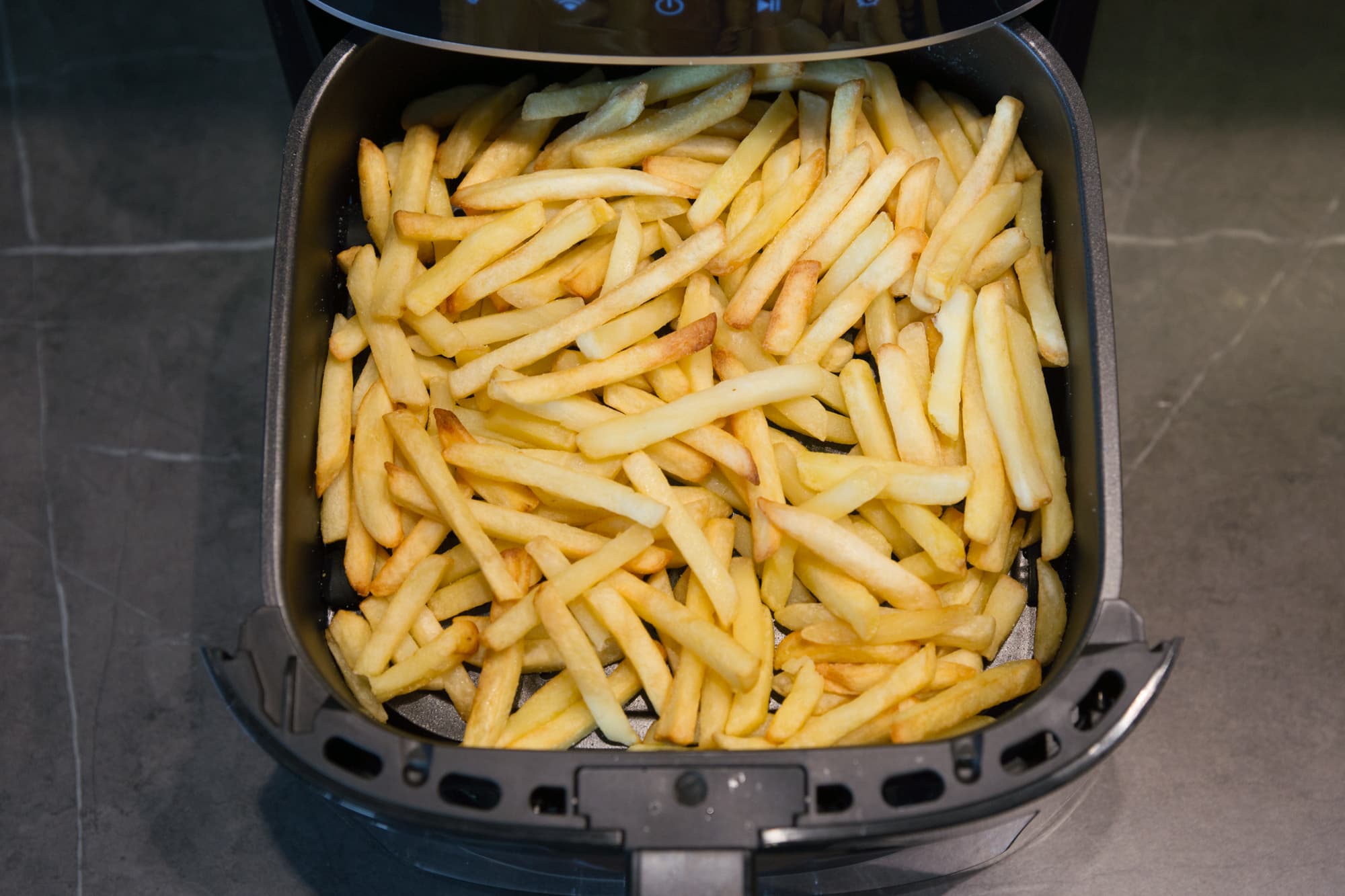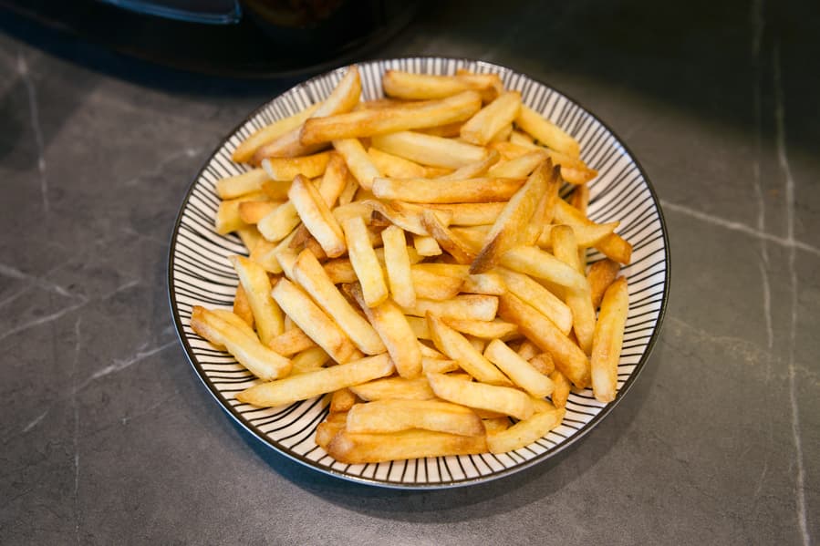 Включили аэрогриль и запустили программу для картофеля-фри. Параметры оставили предустановленные — 200 °C на 25 минут. В процессе мы регулярно заглядывали в корзину, один раз перемешивали содержимое и уже через 10 минут обнаружили, что картофель полностью готов.