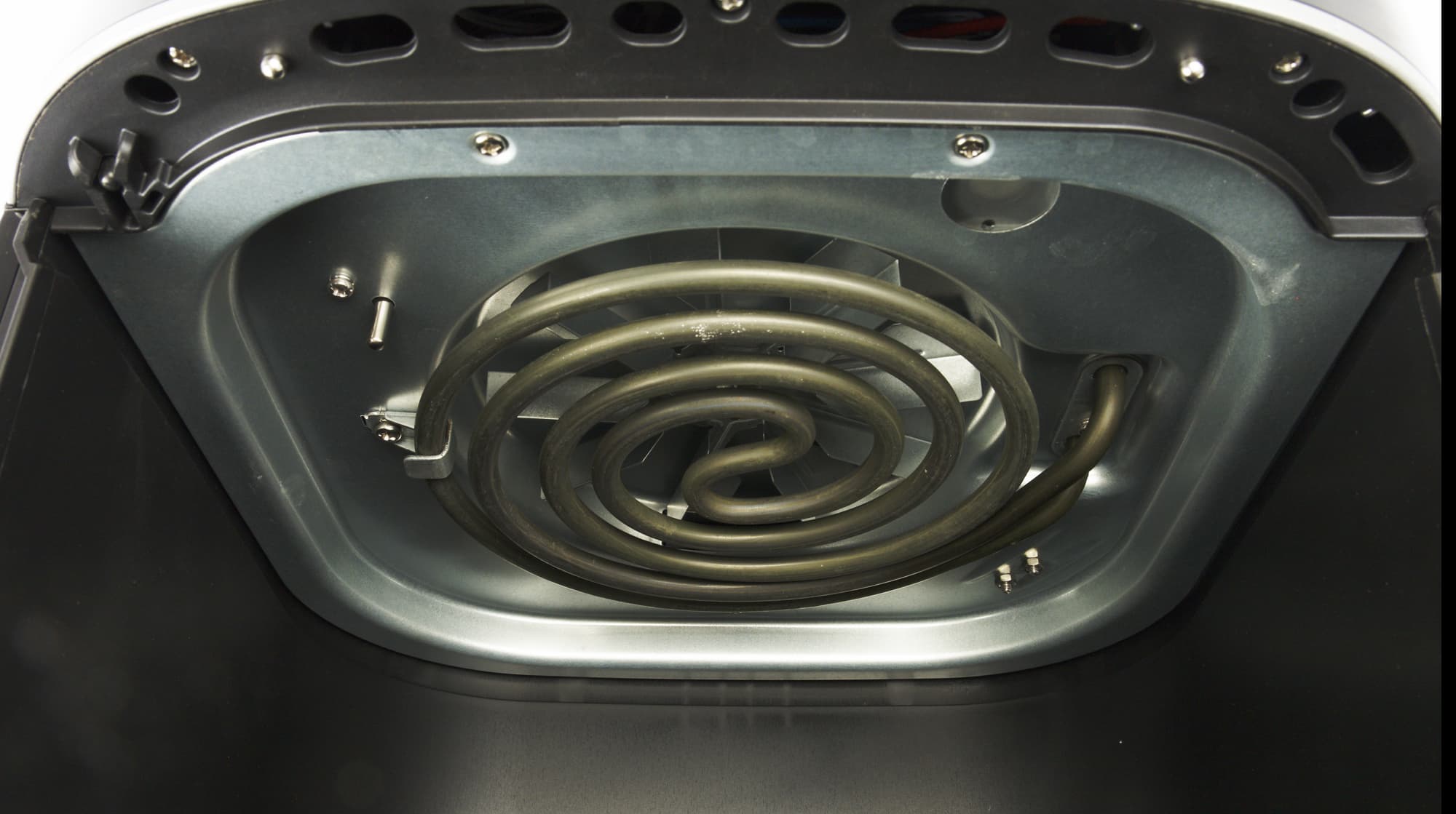 Дно и боковые стенки внутренней камеры покрыты термостойким пластиком, верхняя часть — металлом. В центре наверху расположен открытый спиралевидный тэн.