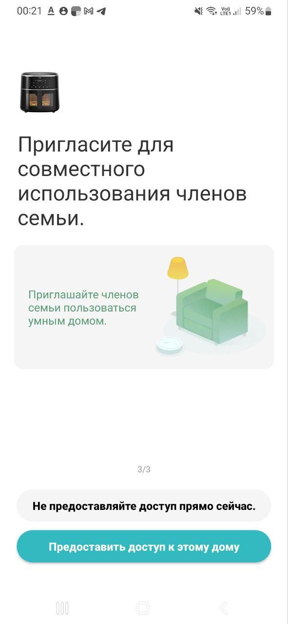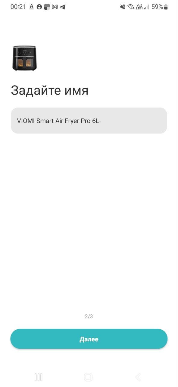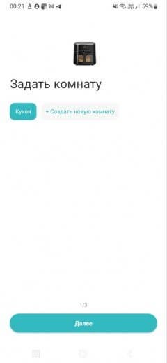 Чтобы познакомить аэрогриль с приложением, следует выбрать его модель из списка устройств или включить автоматический поиск, чтобы приложение само ее обнаружило. Перед этим на панели управления нужно зажать и удерживать пару секунд кнопку Wi-Fi, пока не появится мигающий значок с такой же надписью. У нас все прошло быстро и прибор обнаружился самостоятельно. Теперь можно задать аэрогрилю любое имя, приписать его к нужному помещению, после чего он появится в общем меню.