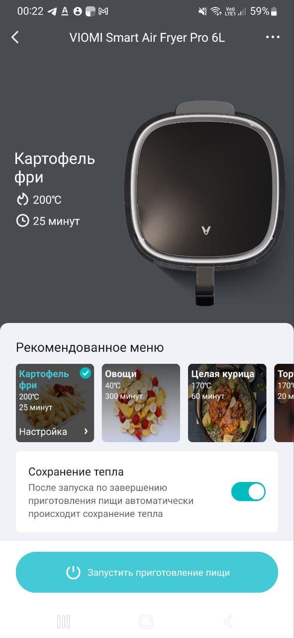 Благодаря широкому температурному диапазону, в аэрогриле Viomi Smart Air Fryer Pro можно готовить овощи, мясо и рыбу, поджаривать тосты, вялить или сушить овощи и фрукты. Устройство оснащено восемью автопрограммами с возможностью корректировки настроек по своему усмотрению. Назначение сенсорных кнопок понятно с первого взгляда, управление удобно как с панели прибора, так и через фирменное приложение. Не будем спорить, нужно ли аэрогрилю дистанционное управление в принципе, просто отметим, что оно есть и работает исправно. Вдруг кому пригодится?