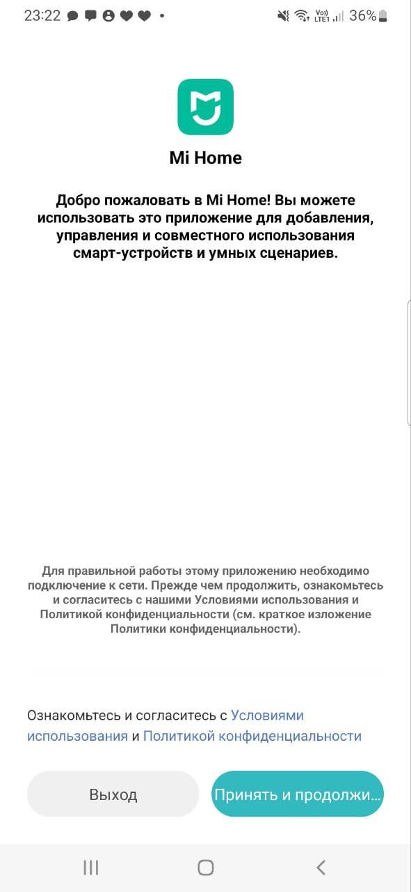 Кроме обычного управления можно воспользоваться фирменным приложением Mi Home. Это общая система для всех устройств умного дома Xiaomi. Скачиваем приложение, проходим регистрацию с указанием адреса электронной почты или номера мобильного телефона и предоставляем данные о местоположении. Смартфон с активированным Bluetooth должен быть подключен к сети Wi-Fi 2,4 ГГц.