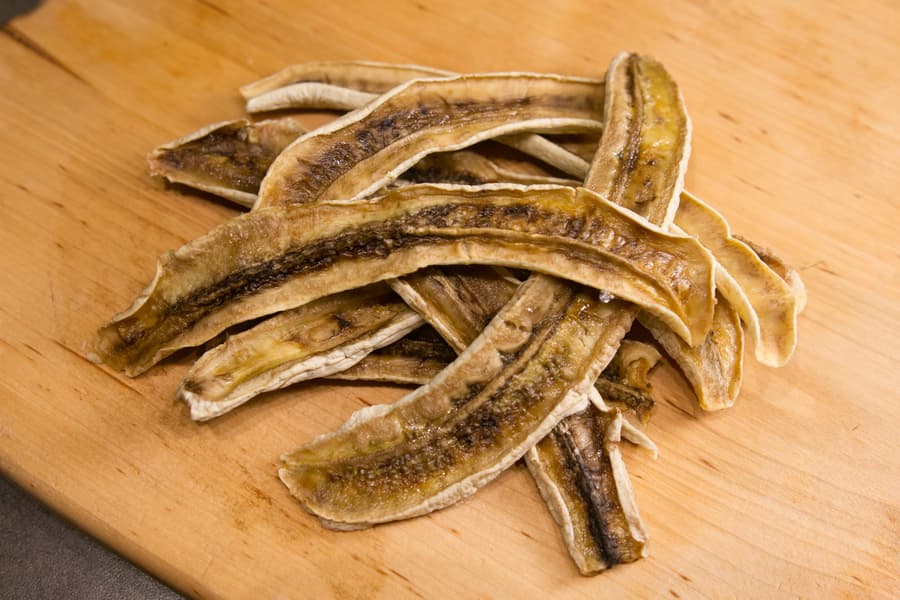 Сушка происходила на 70 °C. Целью были именно вяленые, гибкие, не засушенные до состояния чипсов бананы. На такой результат понадобилось 3 часа. В середине цикла кусочки были перевернуты.