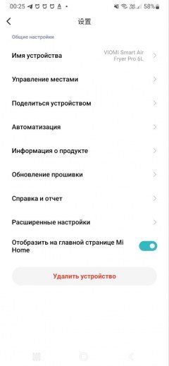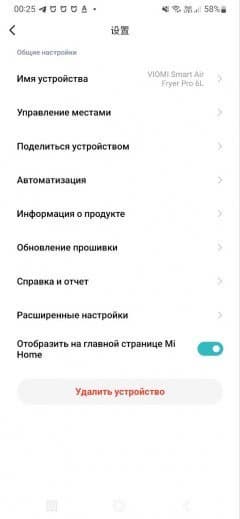В настройках есть возможность менять имя прибора, помещение, добавлять пользователей для совместного управления, обновлять прошивку или удалить устройства из системы.