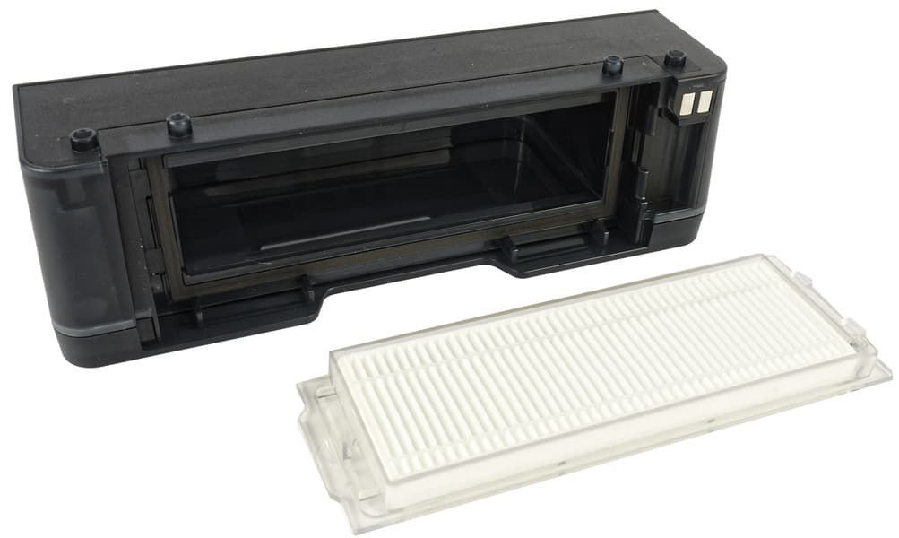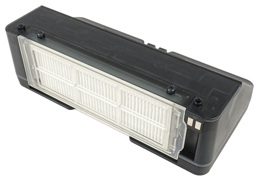 Мусоросборник можно опустошить через отверстие — оно закрывается съемной крышкой, на которой закреплен прямоугольный HEPA-фильтр.