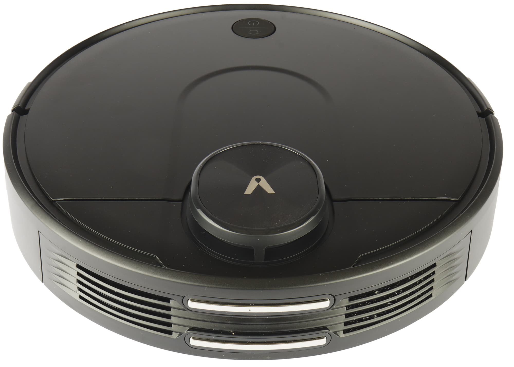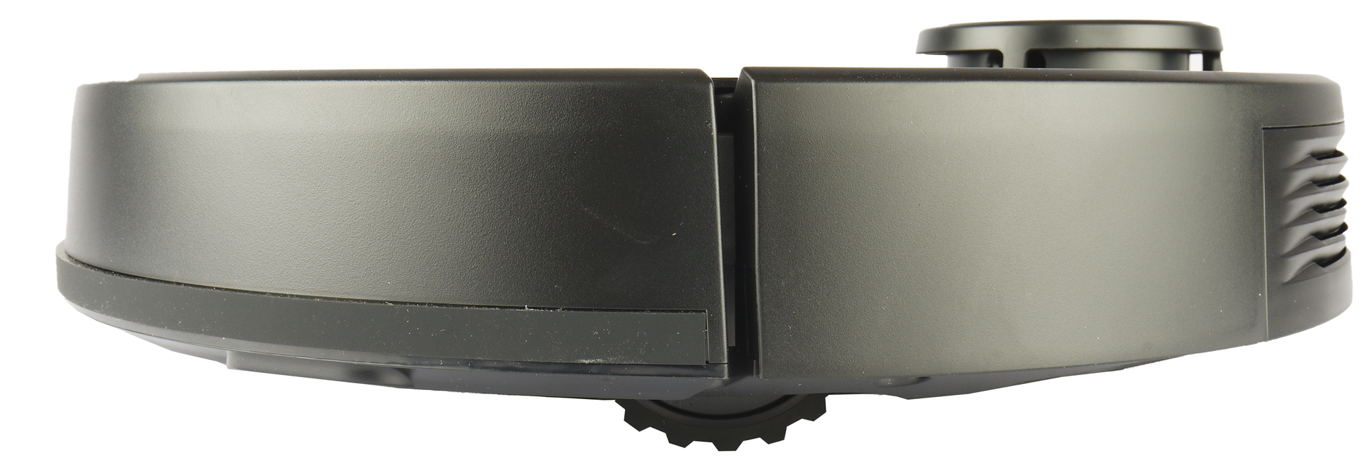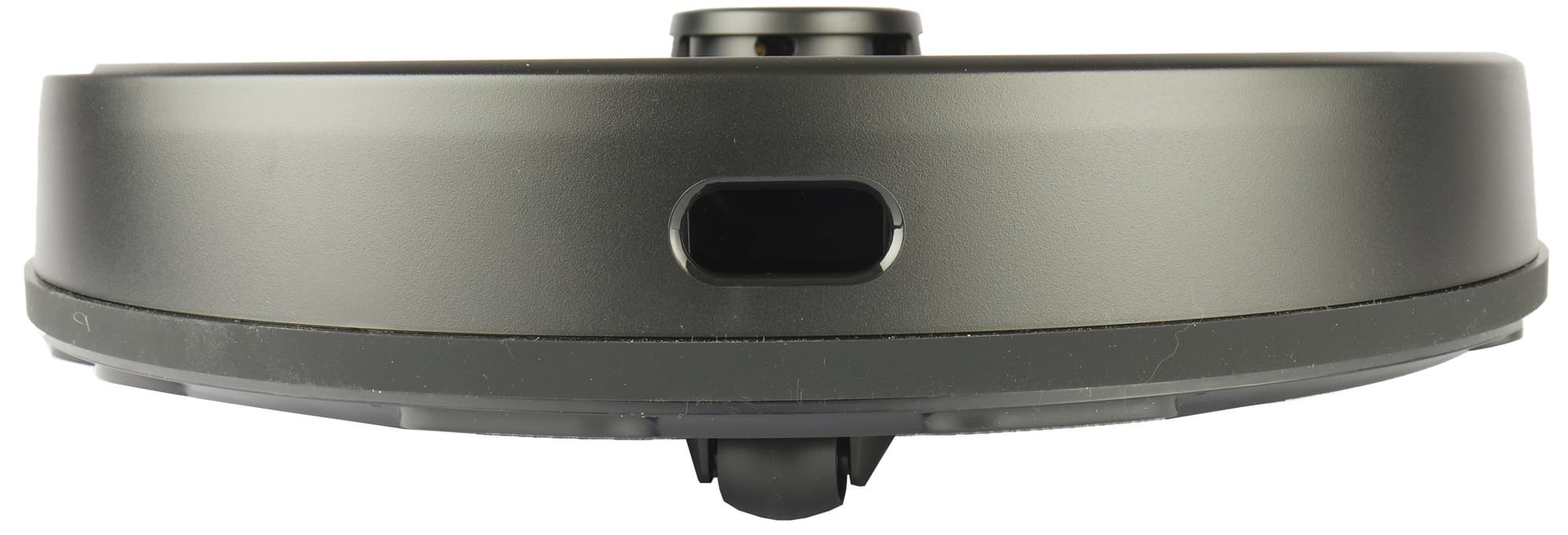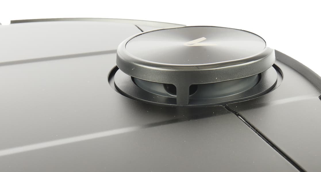 Круглый корпус робота выполнен из черного матового пластика, приятного на ощупь. Над верхней панелью выделяется башенка лидара, украшенная логотипом производителя.