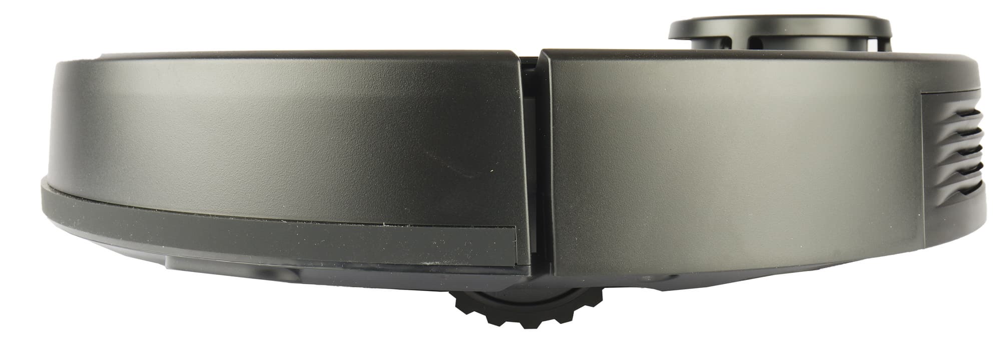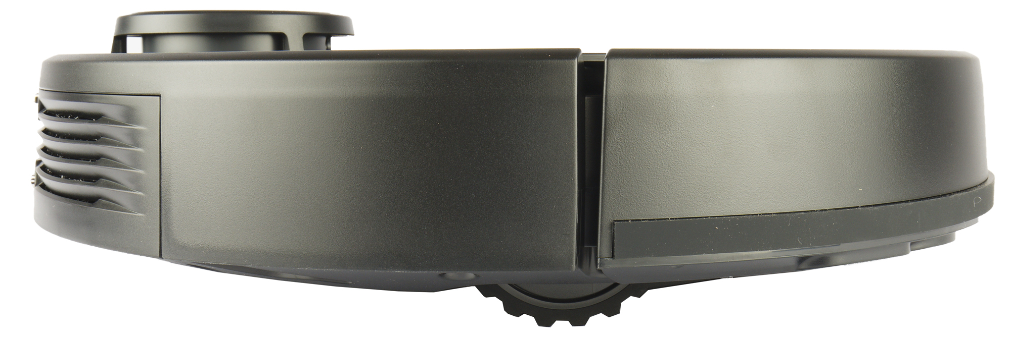 Передняя часть корпуса окаймлена подвижным бампером, внутри которого стоят датчики столкновения. Эту часть пылесоса защищает от повреждений при контакте с обстановкой полоса мягкой резины.