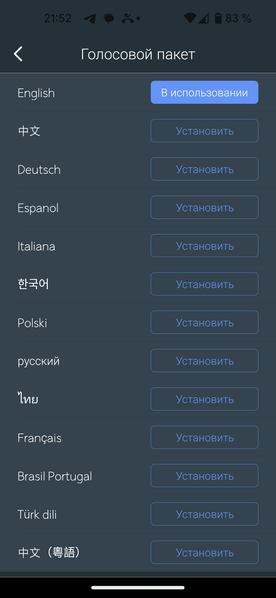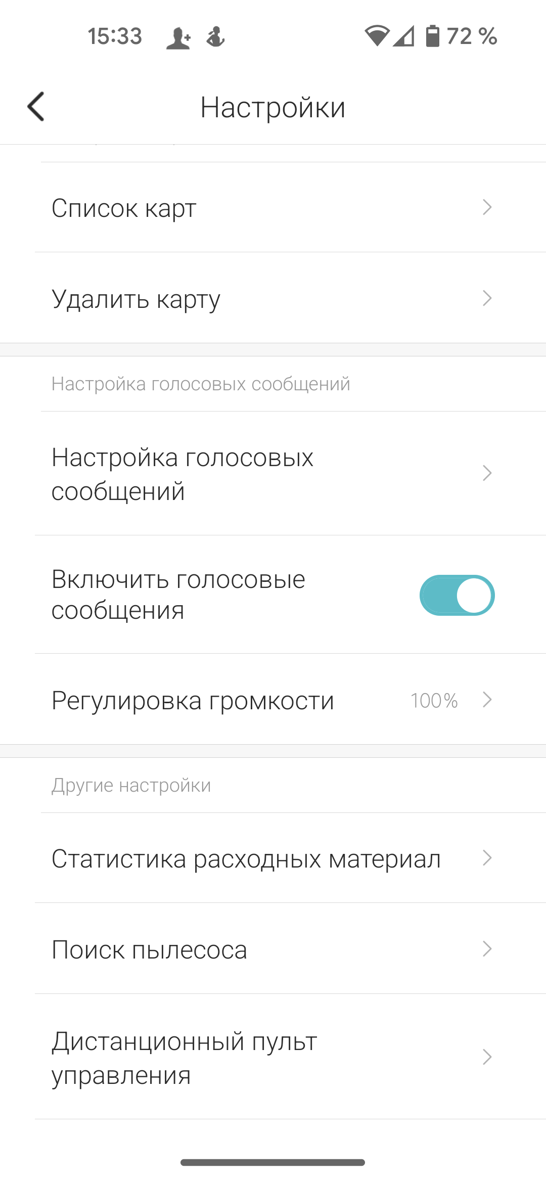 Об уборке и проблемах во время нее модель рассказывает вслух: по умолчанию по-русски, но можно выбрать и другой язык из списка. Голос женский, без акцента, приятный.
