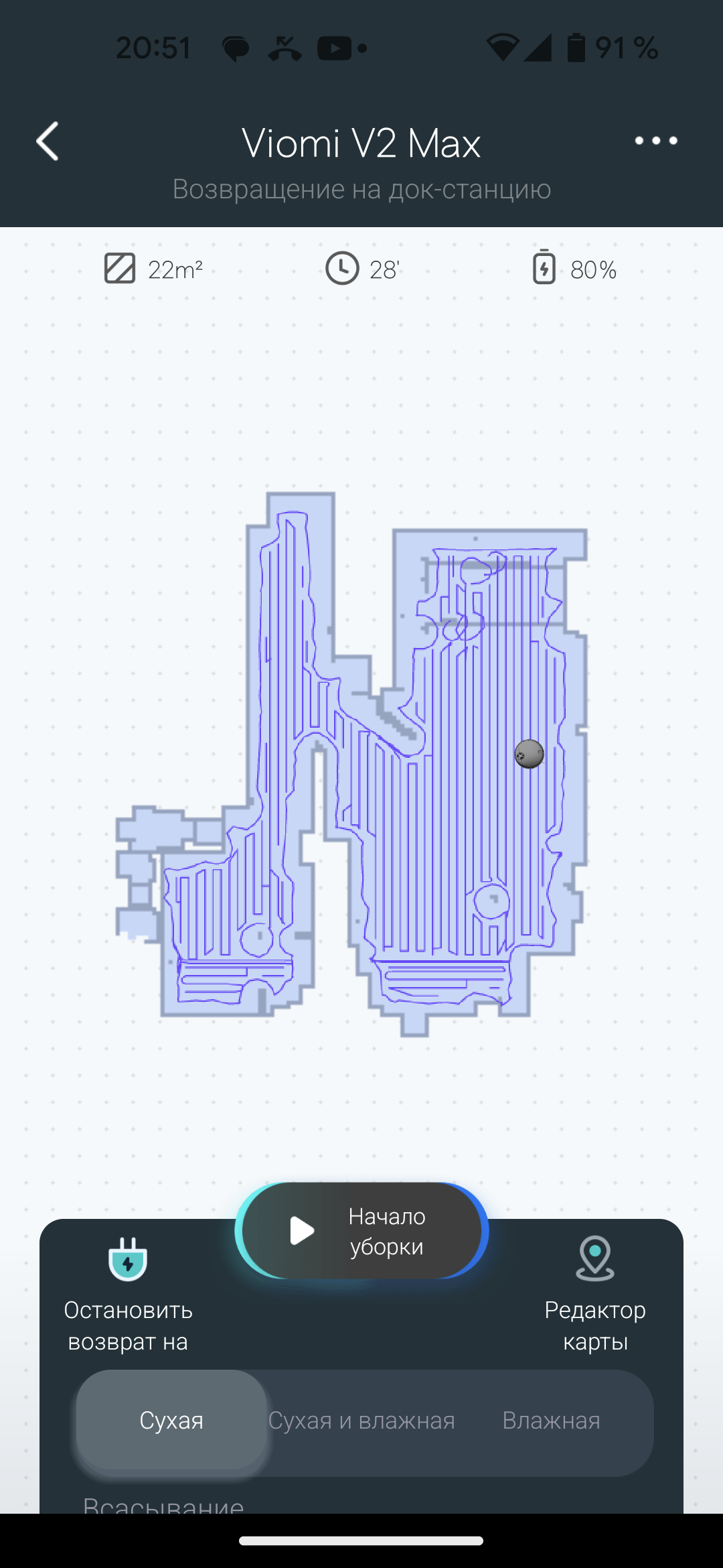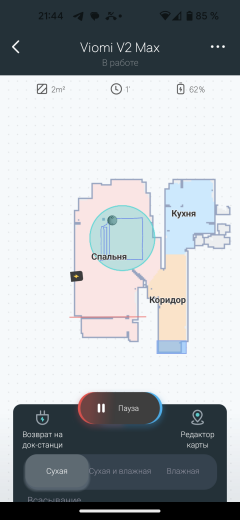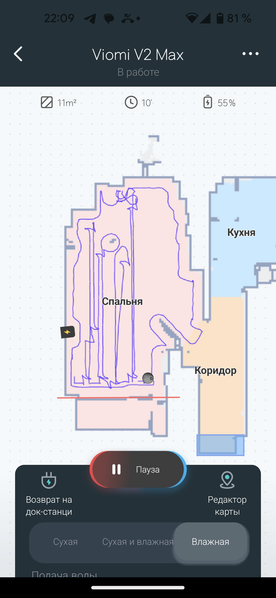 На этом этапе Viomi V2 почти в точности повторил предыдущий маршрут.