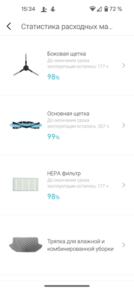 «Счетчик расходных материалов» позволяет отслеживать состояние аксессуаров: щеток, фильтров и насадок для влажной уборки.