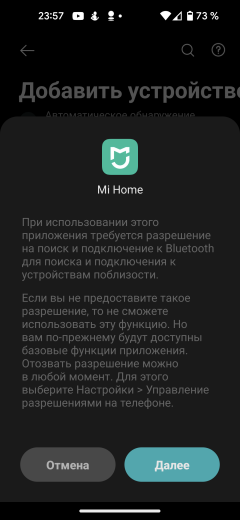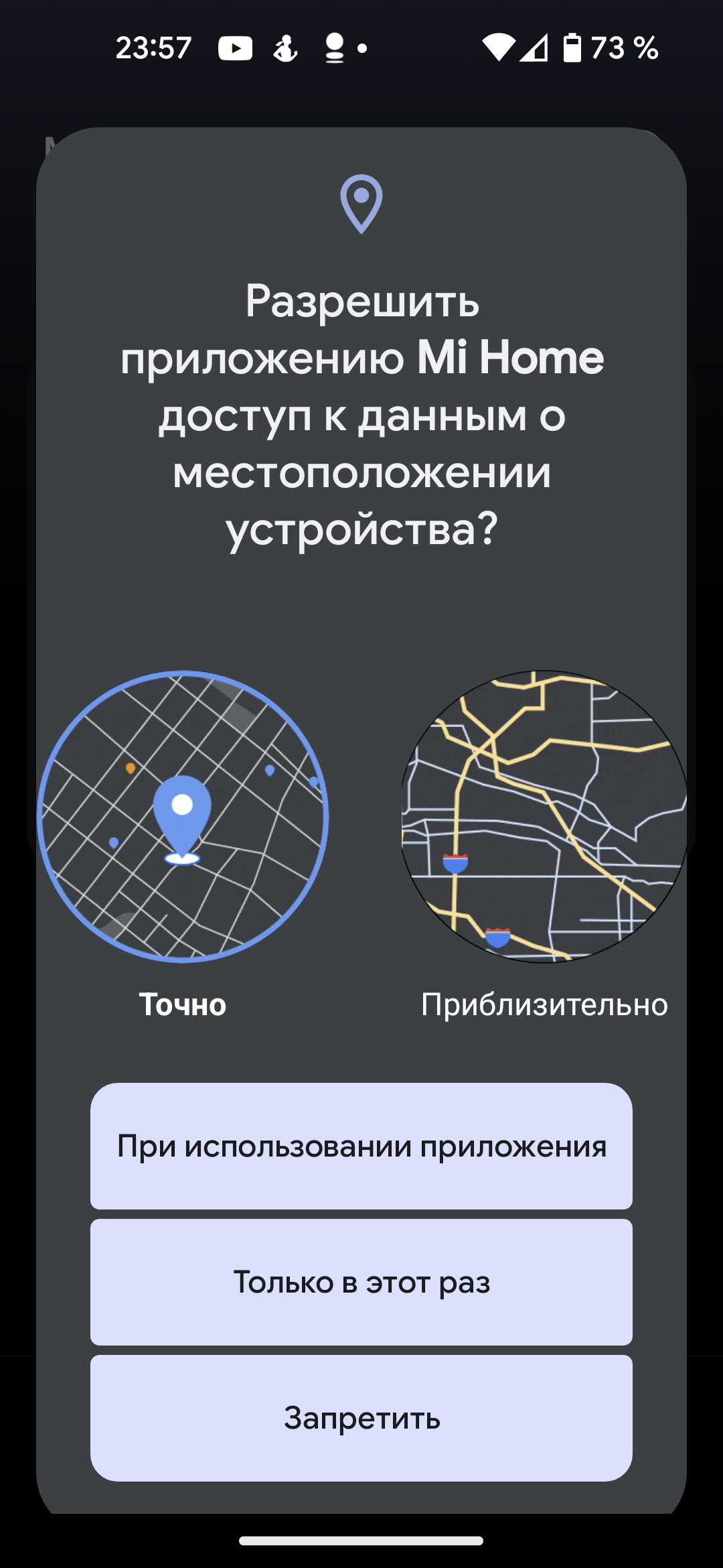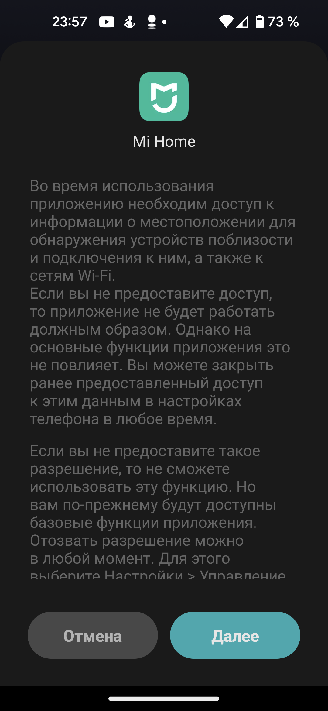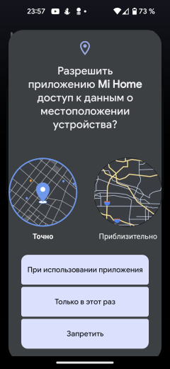 Для корректного обнаружения робота Mi Home запрашивает разрешение на доступ к местоположению. Впоследствии его можно отозвать.