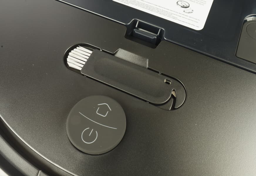 Светодиодная подсветка кнопки позволяет пользователю узнать о состоянии устройства. Когда пылесос работает, она горит синим, а мигает этим цветом при подключении к сети или обновлении внутреннего программного обеспечения. Если робот заряжается, индикация становится желтой мигающей. Если в батарее осталось мало энергии, то лампа мигает желтым, но медленнее. При ошибке в работе подсветка красная.