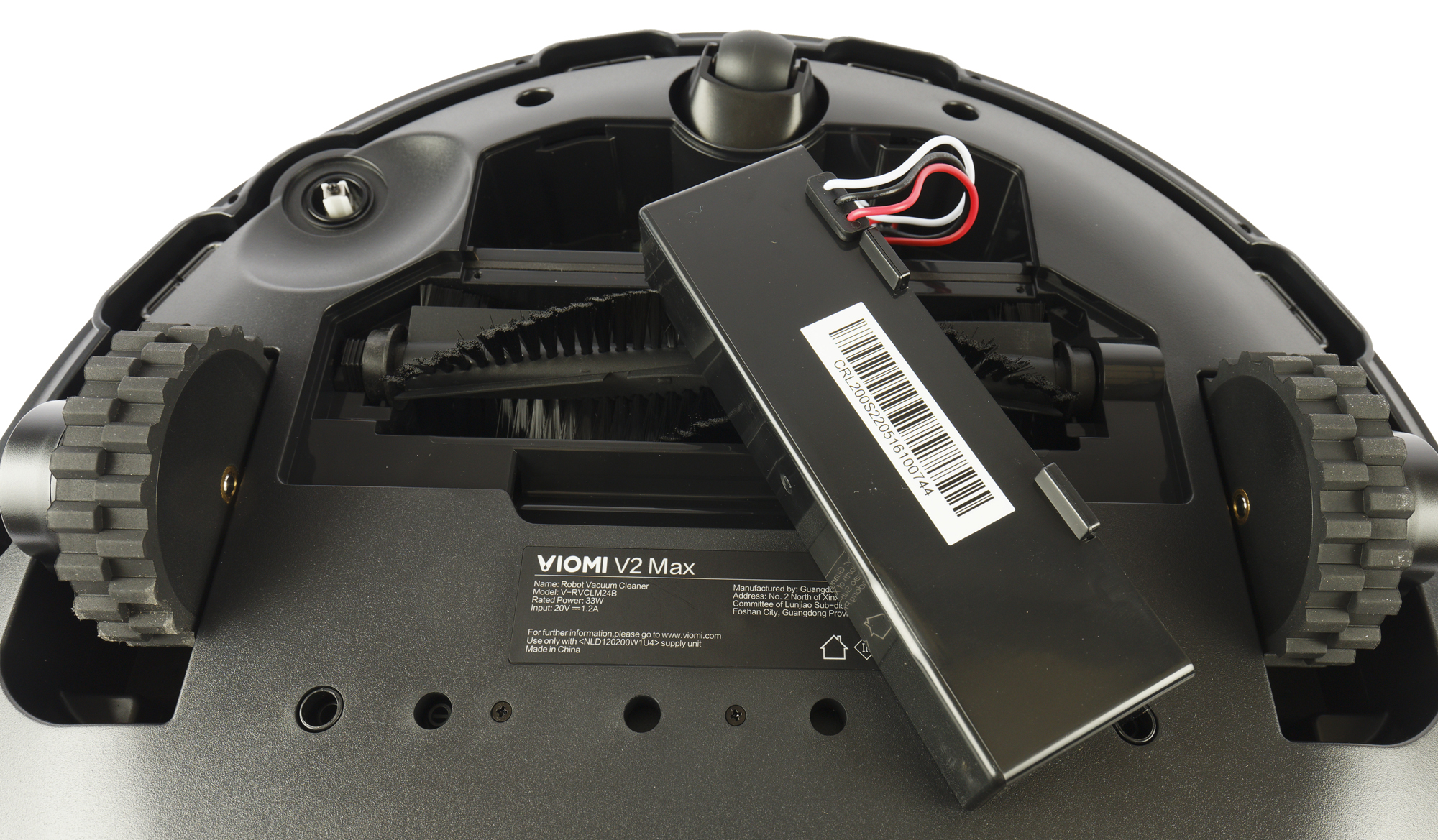 Между опорным колесом и центральной щеткой — отсек для источника питания. Батарея у этой модели заключена в прямоугольный неразборный корпус оригинальной конструкции: если она потребует замены, придется поискать точно такую же, предназначенную для этой модели.