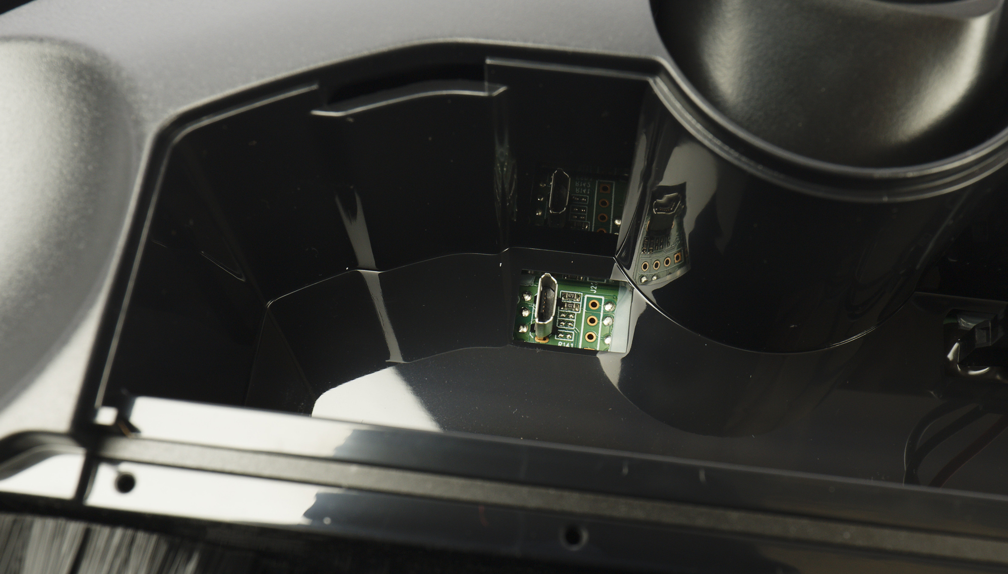 Под аккумулятором обнаружился сервисный разъем Micro-USB. Подключившись к нему, любознательный умелец сможет, вероятно, получить доступ к внутреннему программному обеспечению устройства.