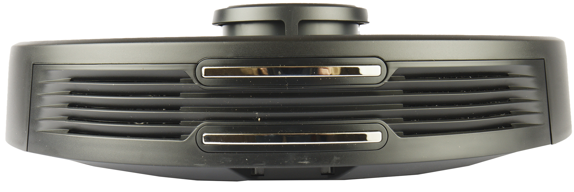 Решетки для выхода воздуха размещены в корме устройства. Здесь же — два контакта, обеспечивающие зарядку робота. Их расположение отличает нашу модель от ее сородичей: они находятся на боковой стороне.