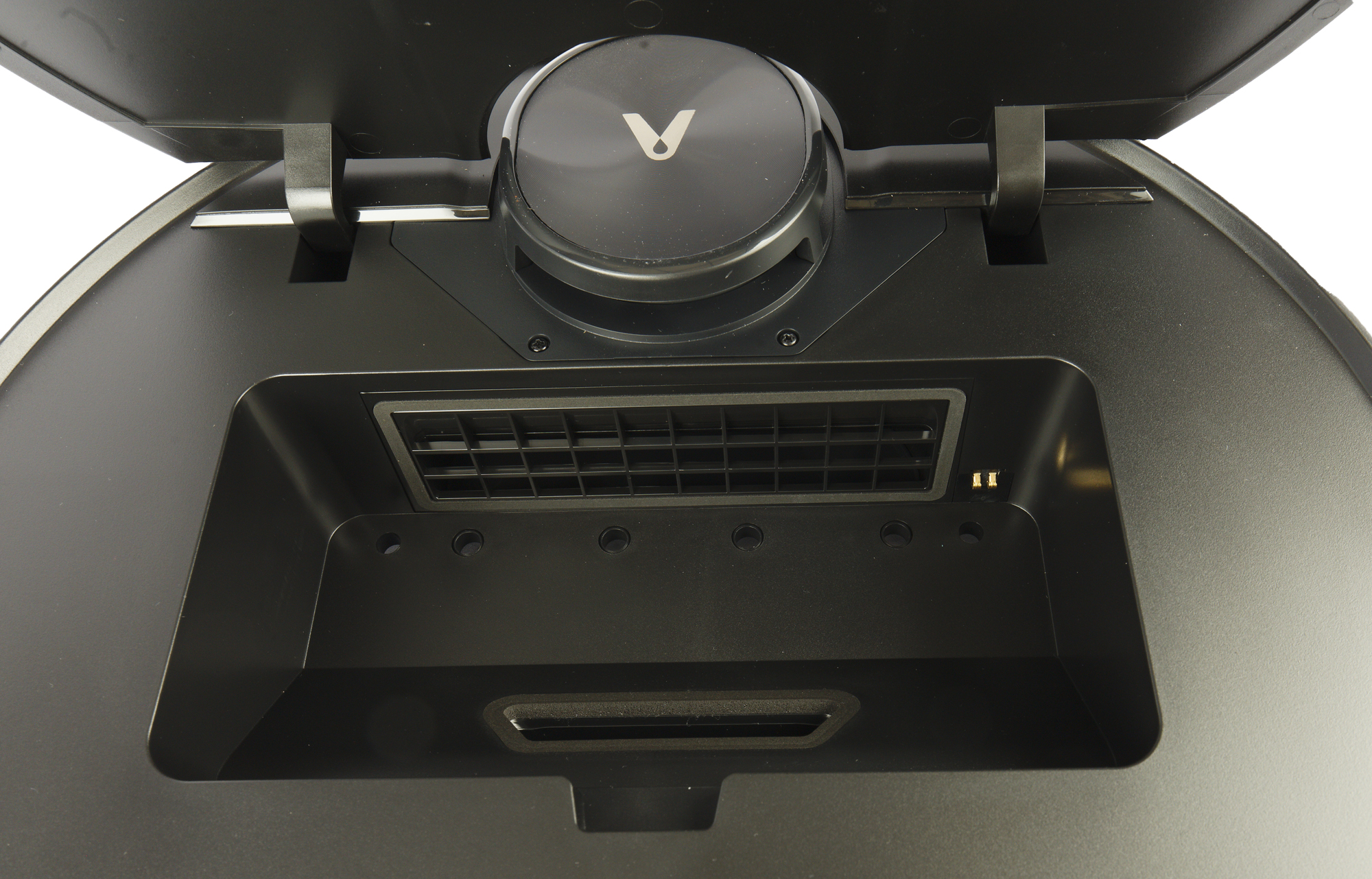 Необычная конструкция базовой станции и контакты на боковой стороне корпуса позволяют почти до нуля уменьшить «мертвую зону» вокруг зарядного устройства — это выгодно отличает V2 от подавляющего большинства роботов.