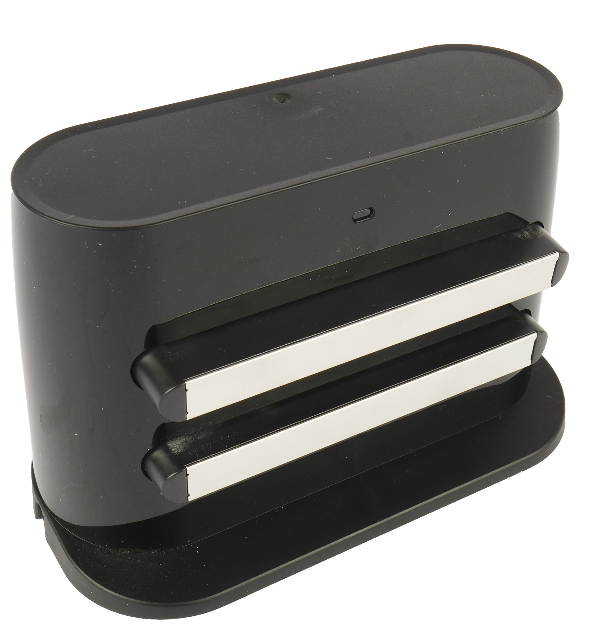 На верхней стороне здесь есть сигнальный светодиод, зажигающийся при подключении к сети. Еще один, инфракрасный, расположен над контактами: с его помощью робот обнаруживает зарядное устройство.