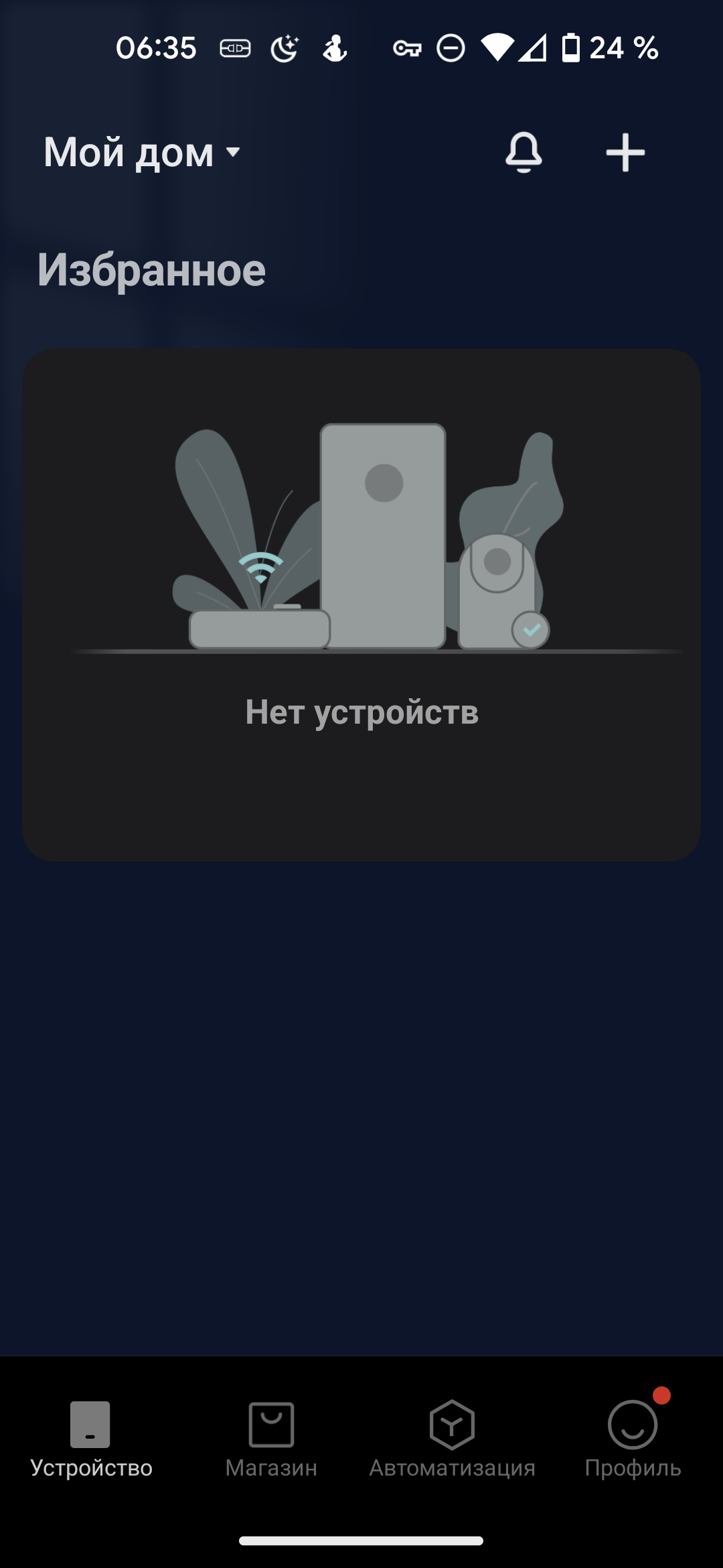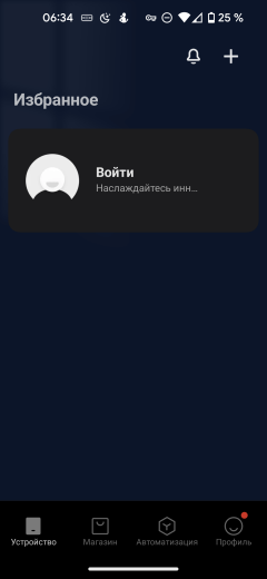 Чтобы добавить новый прибор, следует воспользоваться ссылкой «+» в правом верхнем углу главного экрана.