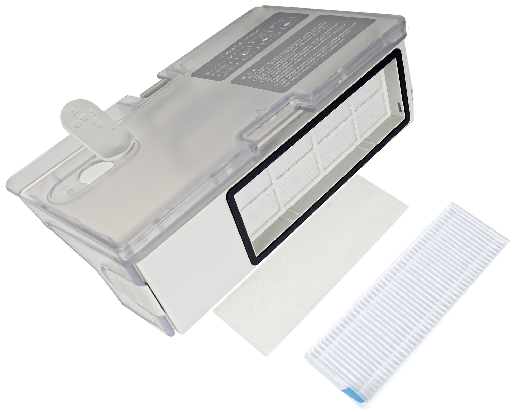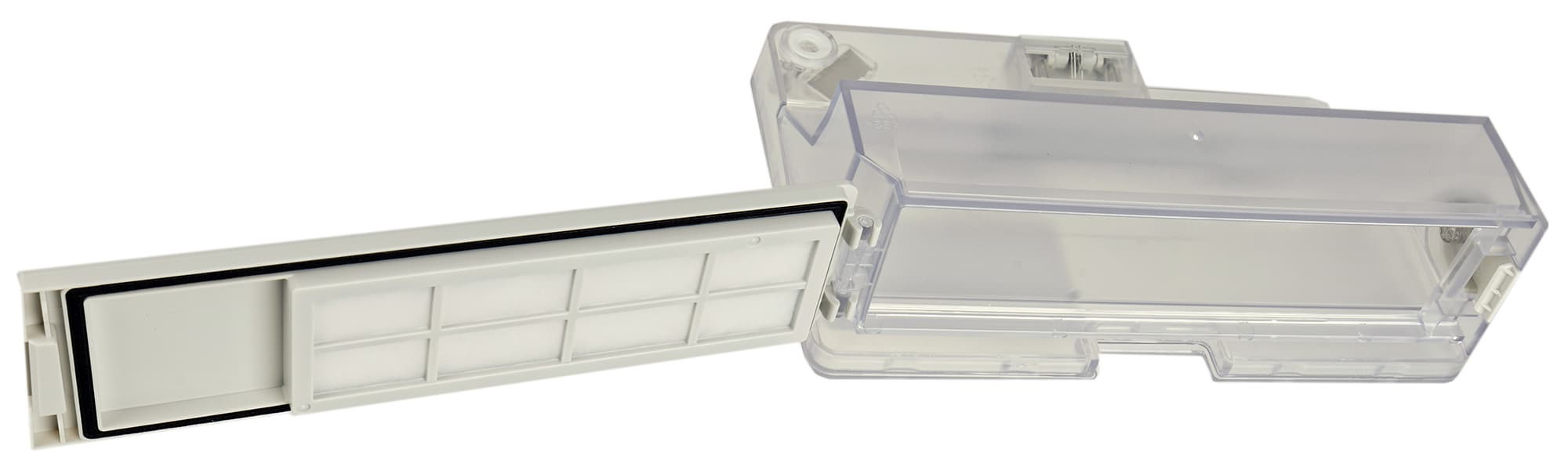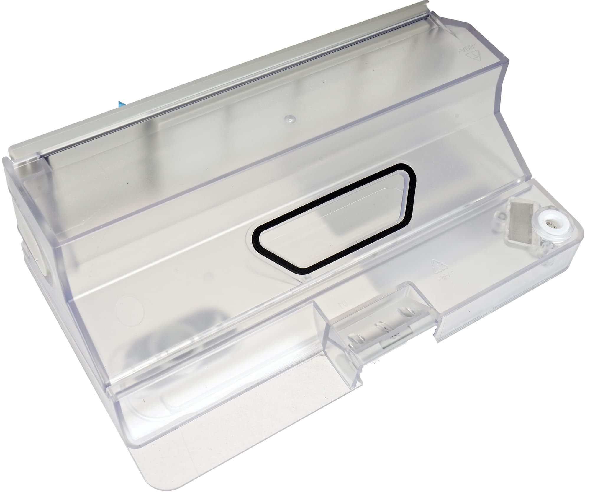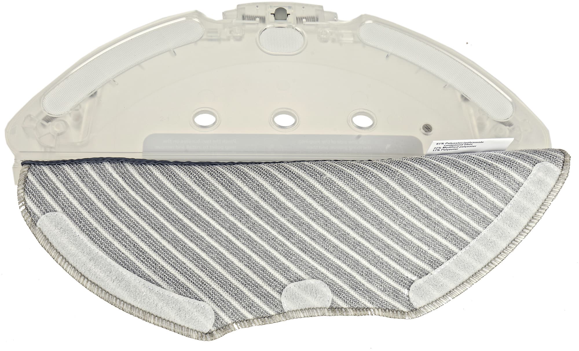 Емкость для влажной уборки сходной формы, но отсека для мусора тут нет: в этом режиме сбор пыли не производится — робот только протирает пол.