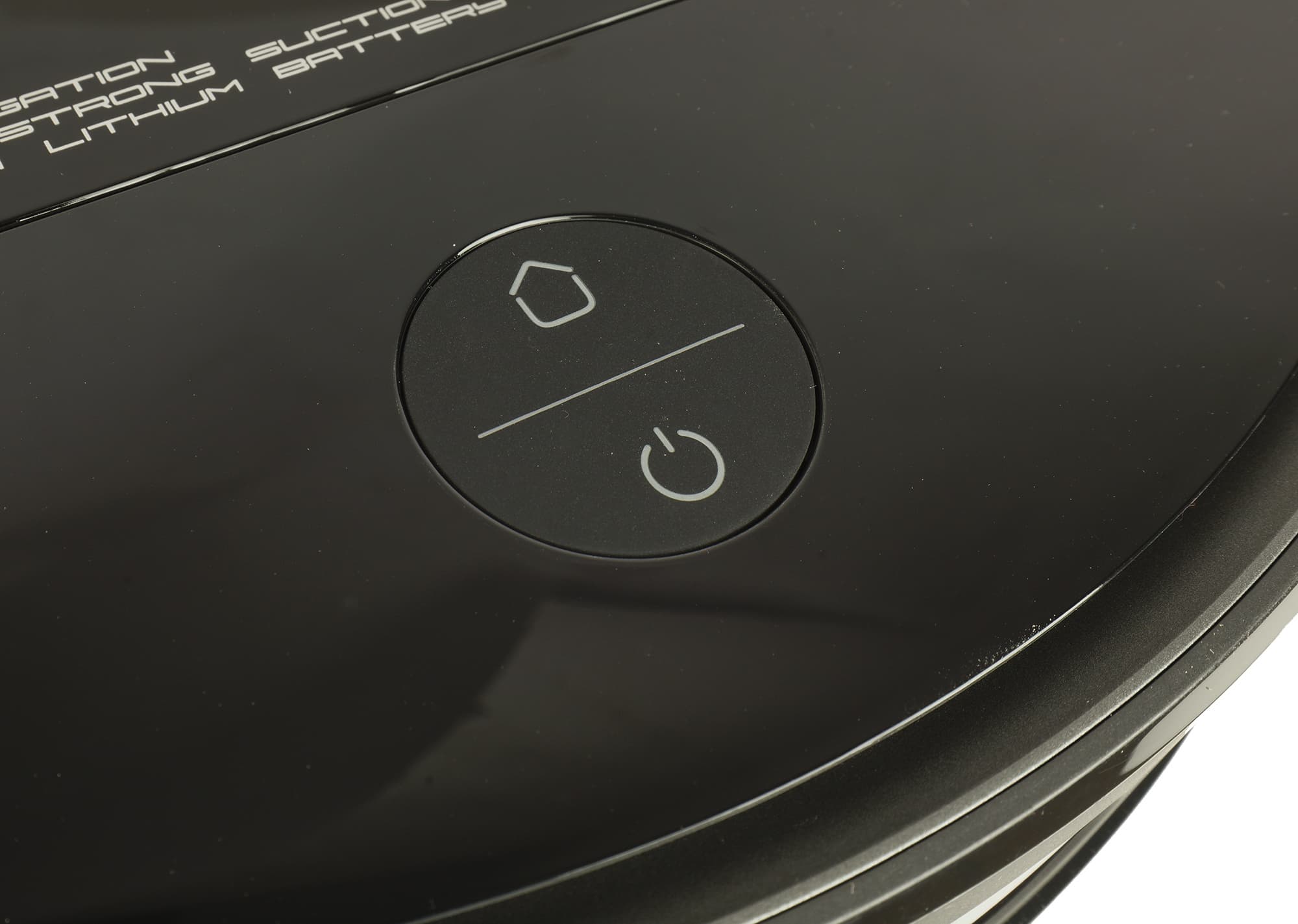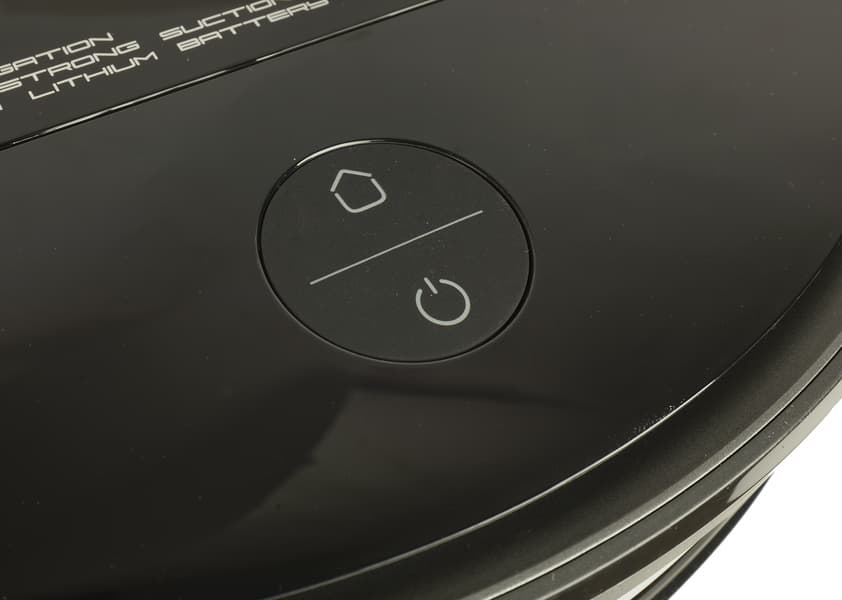 Круглая сенсорная «кнопка» на верхней панели разделена на две активные зоны. Их назначение интуитивно понятно: нажатие на верхний полукруг с изображением домика отправляет прибор на базу, а нижняя часть запускает и приостанавливает уборку в автоматическом режиме.
