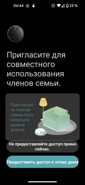 Перед началом работы приложение предупреждает о том, что полноценное использование устройства с редактированием карт и установкой параметров возможно только после создания карты помещения. Для этого необходимо провести как минимум одну полную уборку в автоматическом режиме и дождаться, пока робот вернется на базу.