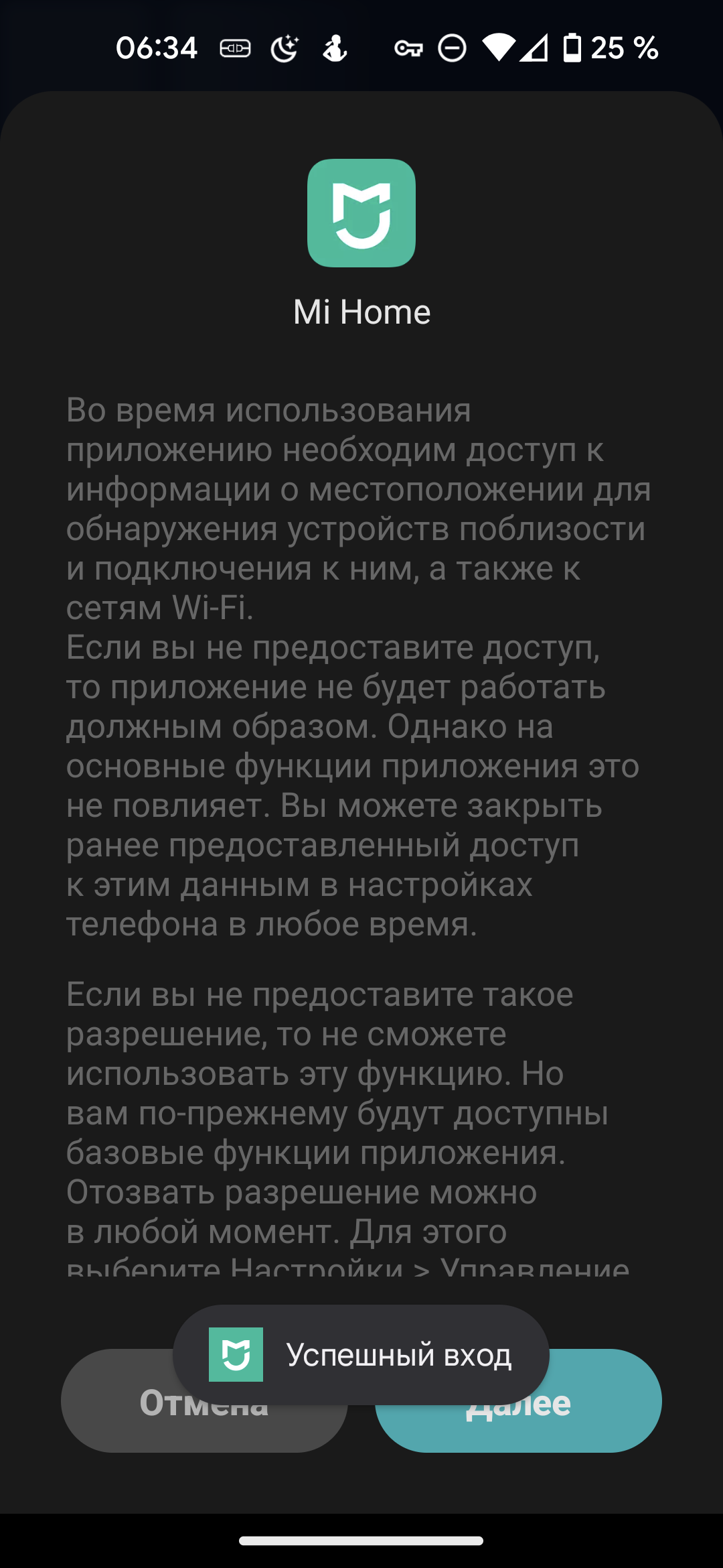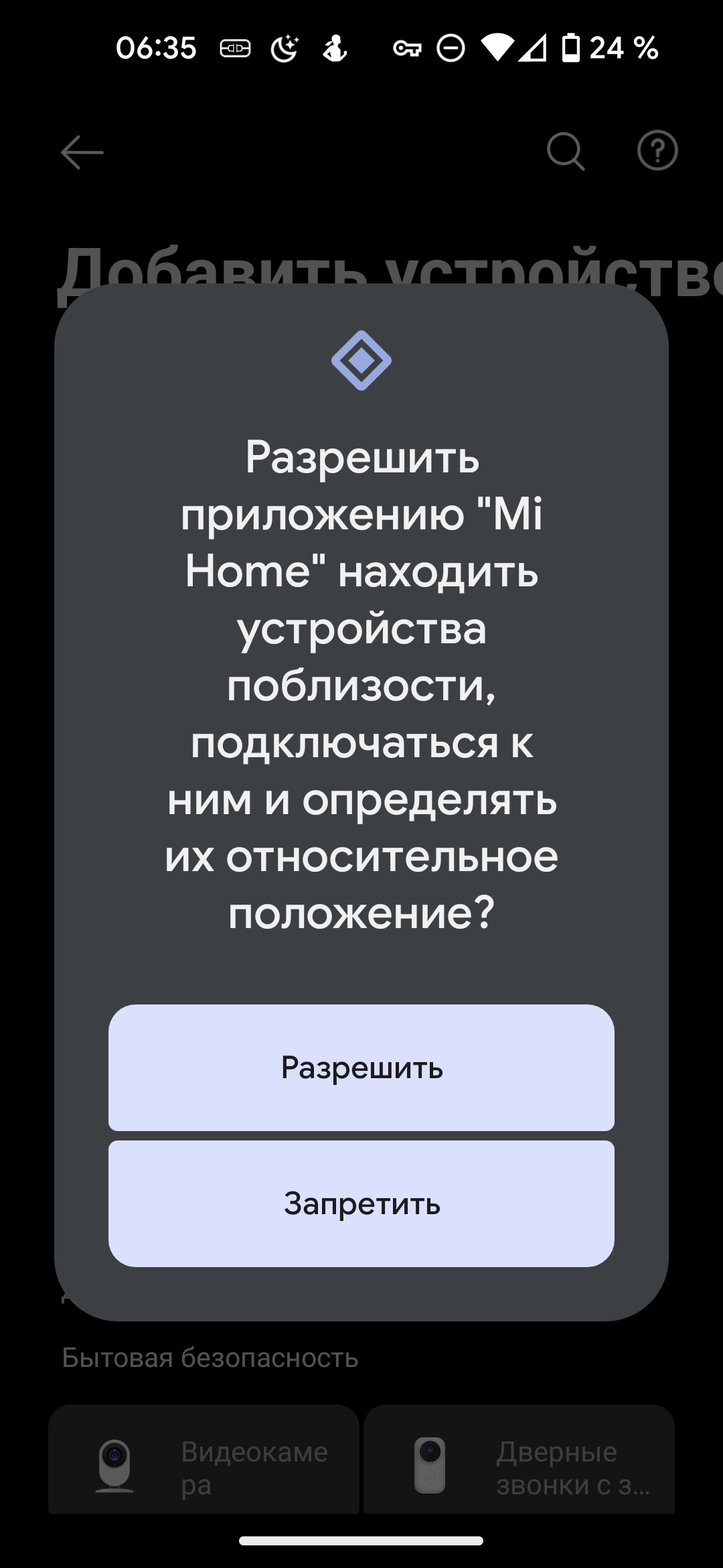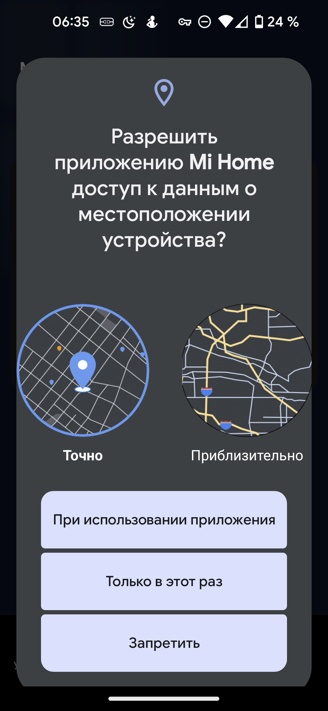 При первом запуске запрашивается доступ к сведениям о местоположении: они требуются для корректного обнаружения устройства. Впоследствии разрешение можно отозвать.